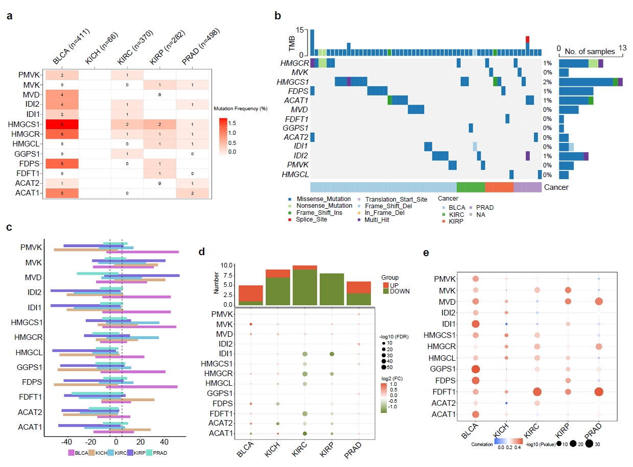 We analyzed genetic data from various urologic cancers and found that the enzymes involved in the MVA pathway are more active in BLCA than in other types. Our findings suggest that high activity of this pathway in BLCA correlates with worse patient outcomes.