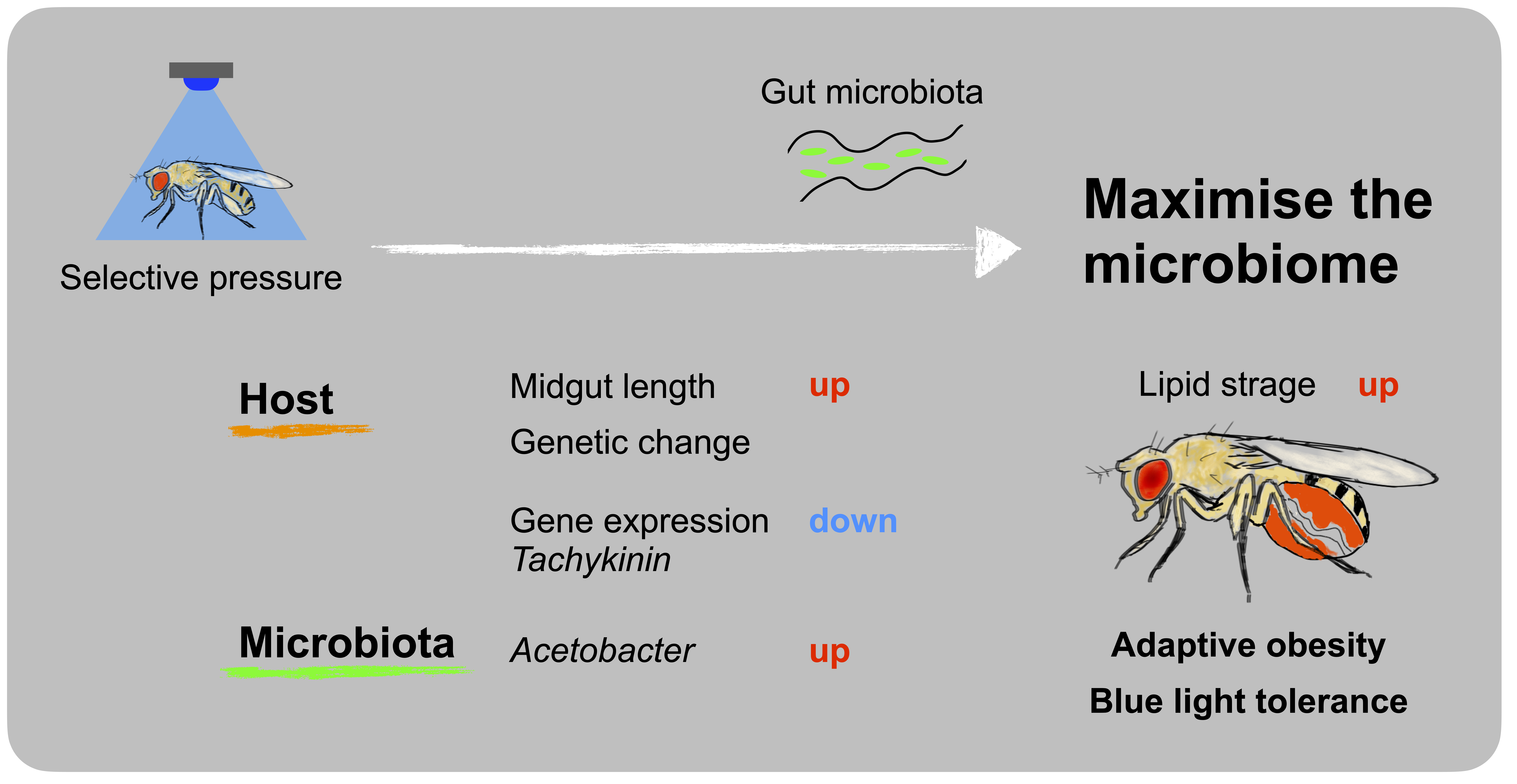 At the outset, we did not anticipate that gut microbes would play such a central role in the flies’ adaptation. Following microbiome-driven evolution across generations may, in the future, reveal fresh insights into how adaptation unfolds in complex host–microbe systems. Importantly, studies in the fields of evolution, physiology and neurobiology highlight Tachykinin-mediated lipid metabolism as a key component of the Drosophila–Acetobacter interaction (4, 6). Looking ahead, focusing on these processes in experimental evolution studies with Drosophila could provide new insights into the potential of host evolution.
