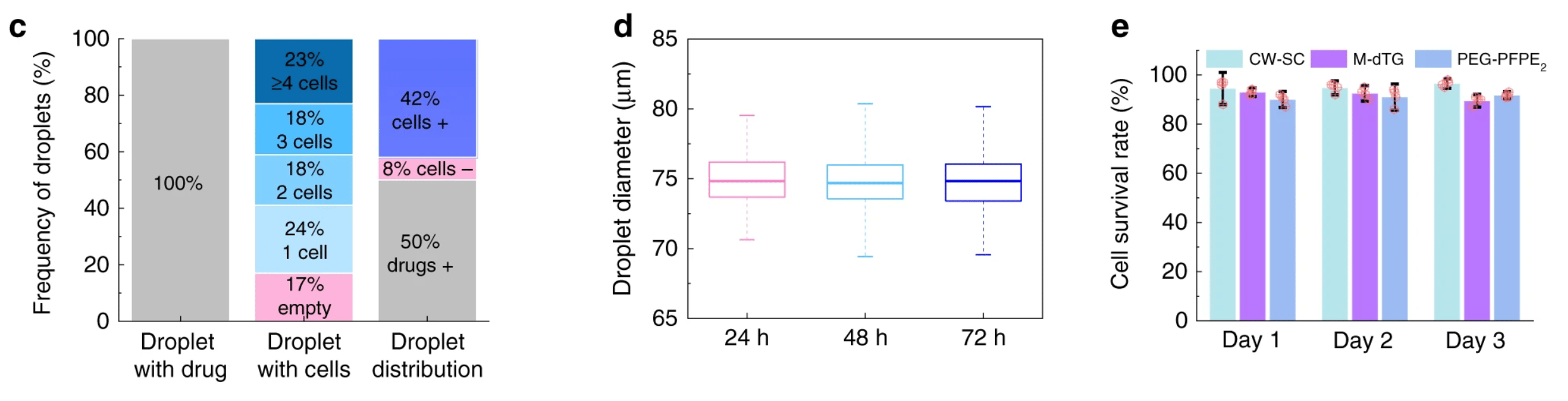- M Chowdhury, W Zheng, S Kumari, J Heyman, X Zhang, P Dey, D Weitz, R Haag. Dendronized fluorosurfactants provide phenomenal droplet integrity to picolitre emulsions for therapeutics development. Nature Communications, 2019, 10, 4546 (Impact Factor:14.919).