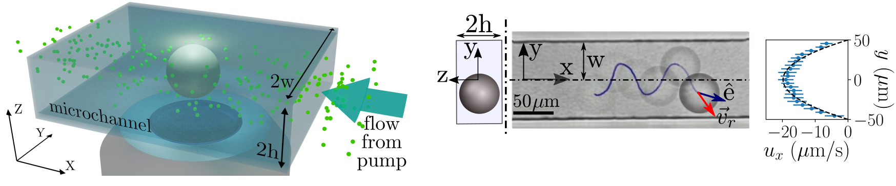 Then Carola and Ranabir joined to seek better control of this oscillation. Looking back now, it was really a crucial moment when they noticed a small dust traveling through the channel, indicating a residue flow opposite to the swimming direction of the droplet. They soon found out that this background flow is a necessary condition for the oscillation: when the flow is absent, the droplets swim straight along the channel wall. Once an opposite flow is present, they start to oscillate regularly while swimming upstream. Ranabir further modeled the system using a finite-sized ideal squirmer with hydrodynamic interactions with the confining walls and the imposed shear flow. The model shows, already to the first order, quantitative agreement with the experimental results.