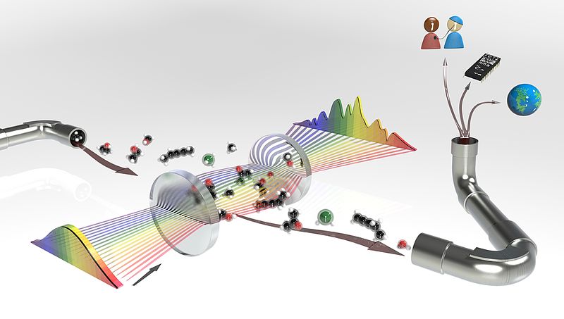 But how do we make mid-IR light in the first place? Well, that has long been a bottle neck in mid-IR technology, but the last few years have brought some improvement and mid-IR sources can these days even be bought off the shelf. These are usually frequency combs – trains of sharp spectral lines with an equidistant frequency spacing – often derived from quantum cascade lasers, but many of them do not cover the full mid-IR range. Compared to the adjacent near-infrared, however, the choice of sources is limited, and more advanced frequency converters like optical parametric oscillators (OPO), which are standard lab-equipment in the near-IR, are still few and far between in the longer mid-IR.