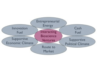 Clearly, there are generic characteristics that apply to any ecosystem. The most important of these factors are simply “food”, “fuel”, and “space”. In economic terms and from the perspective of a dynamic, young ecosystem, which in my opinion still describes biosciences, then “food” describes a reliable supply of useable innovation; for “fuel” the ecosystem must have access to driving entrepreneurial energy deriving from innovative bioscientists as well as a constant supply of investment cash from biotech-savvy investors, and for “space” there needs to be a supportive environment, both political and economic, allowing embryonic ventures to grow and develop before being released into the economy.