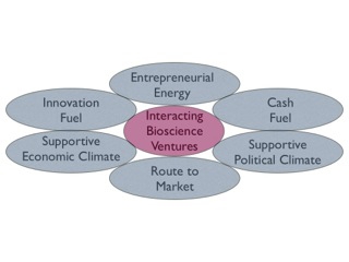 These six key factors are described in the simple diagram at the top of this post. In the proximity of these factors a new bioscience venture may at least be assured of a fair crack of the whip and will have a fighting chance, if their product is of sufficient quality and if there is a real need for whatever they are selling.