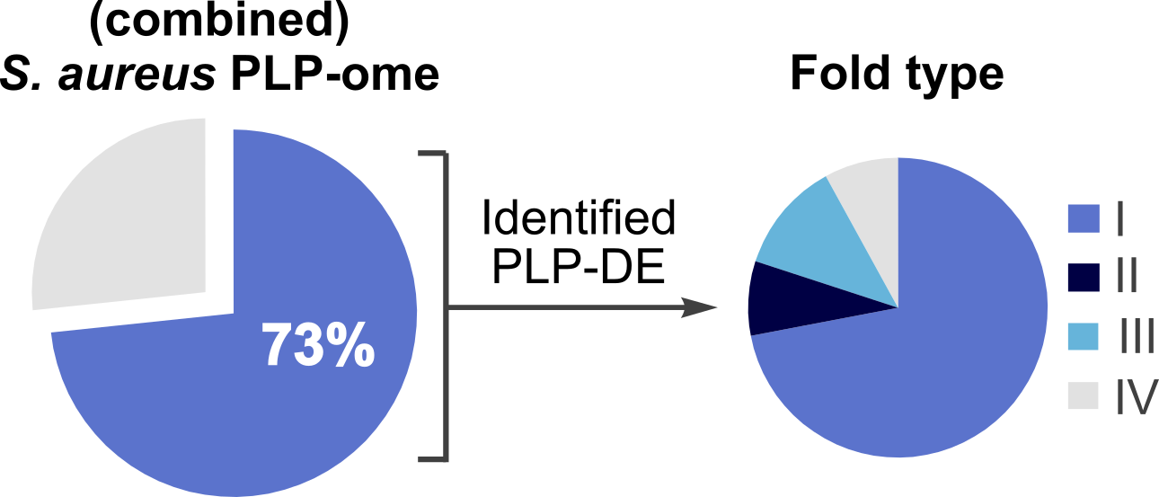 Combining the results of proteomics experiments using our PL-derived probes, we could address 73% of the PLPome of S. aureus, including already known PLP-DEs, e.g. cysteine synthase. Thereby, confirming our method as a powerful tool to investigate the PLPome of living organisms (Figure 2). Furthermore, proteins of unknown function could be assigned as PLP-dependent using additional in vitro assays.