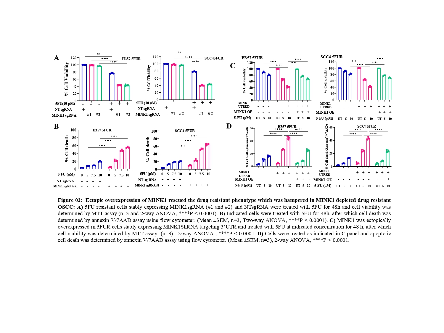Next, Ectopic expression of MINK1 efficiently rescued the 5FU resistance phenotypes in MINK1 KD (knock down) OSCC (Fig. 2C&D), which further depicts MINK1 dependency of 5FU resistance in OSCC.