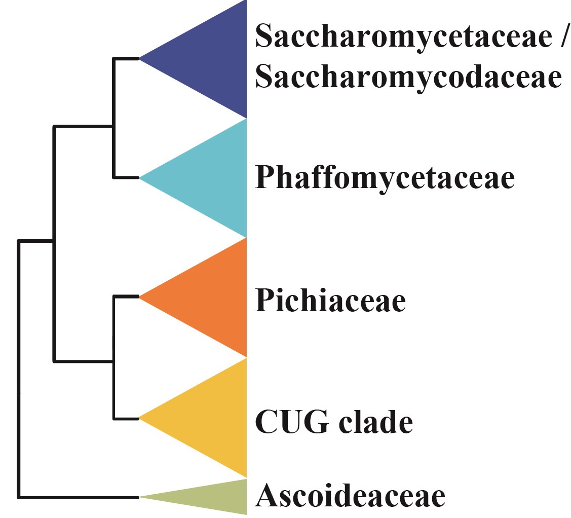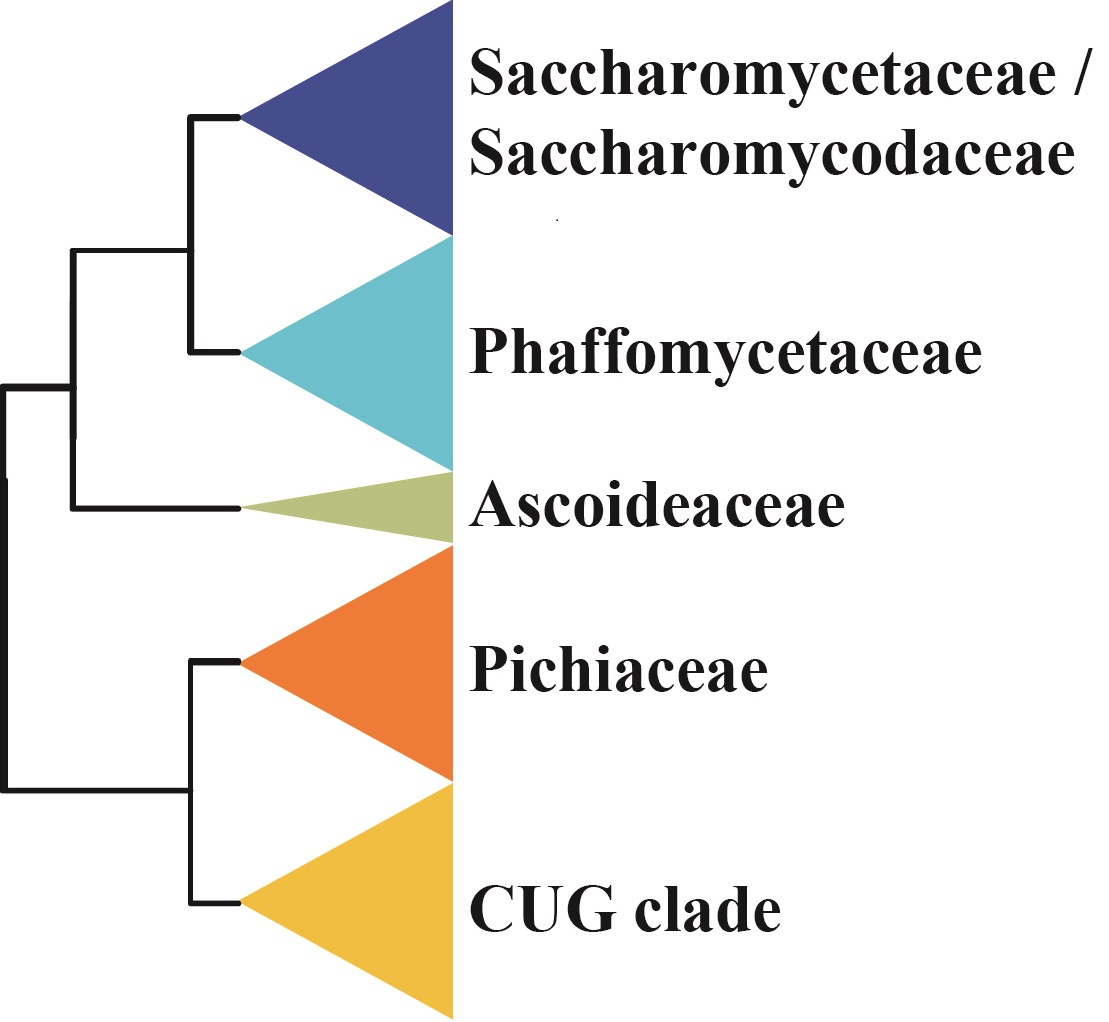 But what about the placement of the family Ascoideaceae and the CUG-Ser2 clade in the new, expanded budding yeast phylogeny? The addition of the genomes of three additional species appears to have solidified support for this topology: