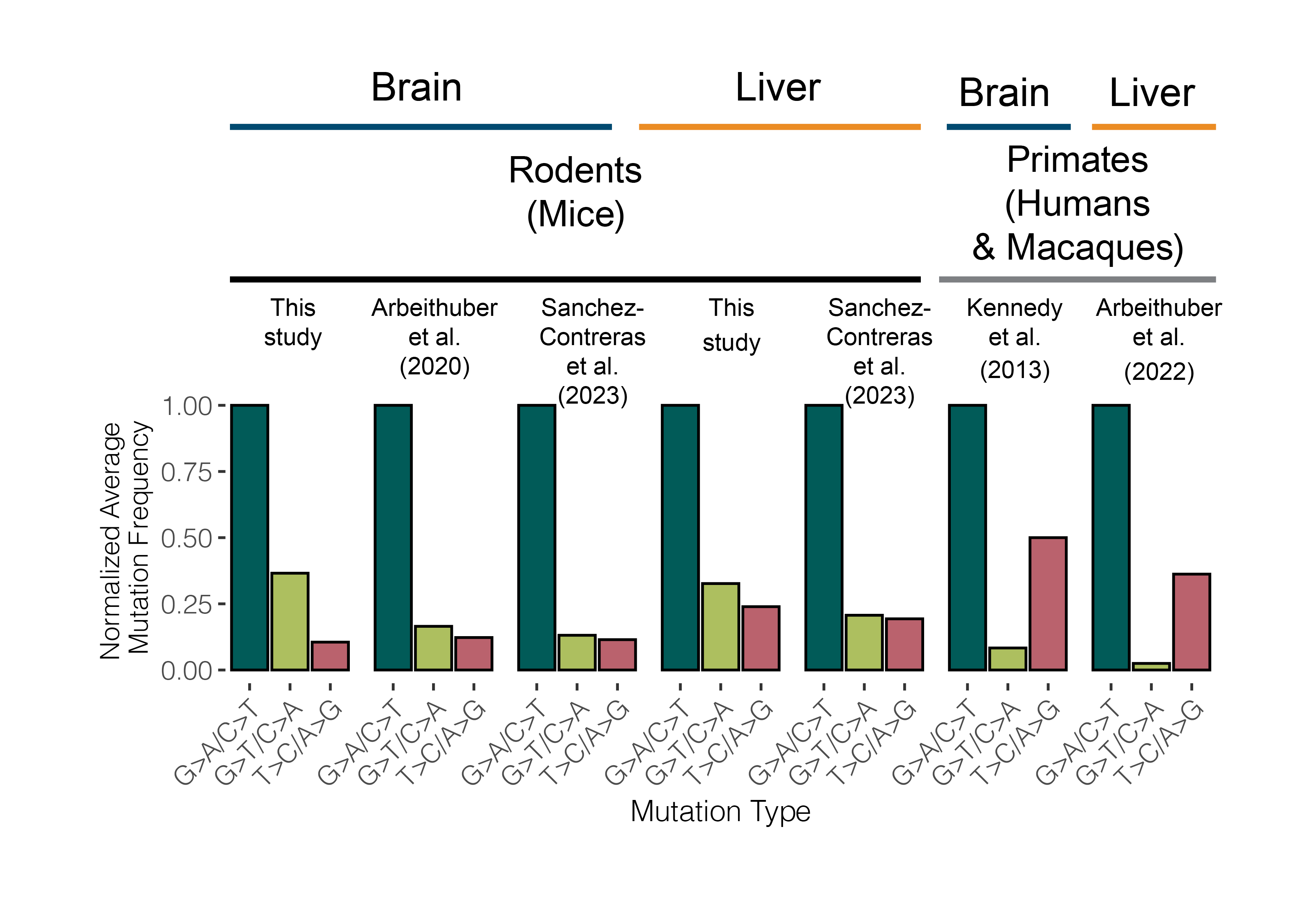 We began our exploration by characterizing the frequency of mutations in the mt-genome and identifying regions that were prone to mutation, or mutational hotspots. We identified three hotspots, including the Origin of Replication of the Light Strand (OriL), which was recently identified as a hotspot in mtDNA in macaque liver (Arbeithuber et al. 2022). Notably, the mouse and macaque mtDNA OriL sequences are vastly different, however they share a conserved stem loop structure. Remarkably, mutations occurred in the same locations of this stem loop between the two species providing insights into the mechanistic basis of these mutations.