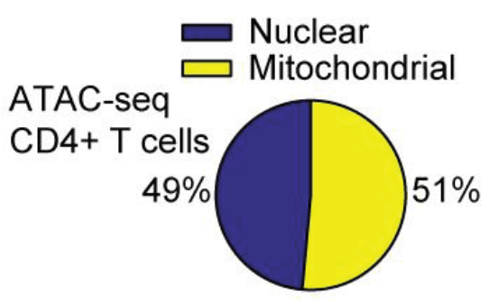 With thousands of citations, the Assay for Transposase Accessible Chromatin by sequencing (ATAC-seq) is one of the most widely-used genomics protocols, even a decade after its first report1. Though the word “mitochondria” does not appear in the original publication, early adopters of this approach know that mitochondrial DNA (mtDNA) could be quite abundant. This is because mtDNA is not densely compacted with histones around nucleosomes, readily enabling the Tn5 transposase to tagment mtDNA. For example, in CD4+ T cells, early ATAC-seq libraries showed >50% of reads mapping to mtDNA2 (Figure 1).