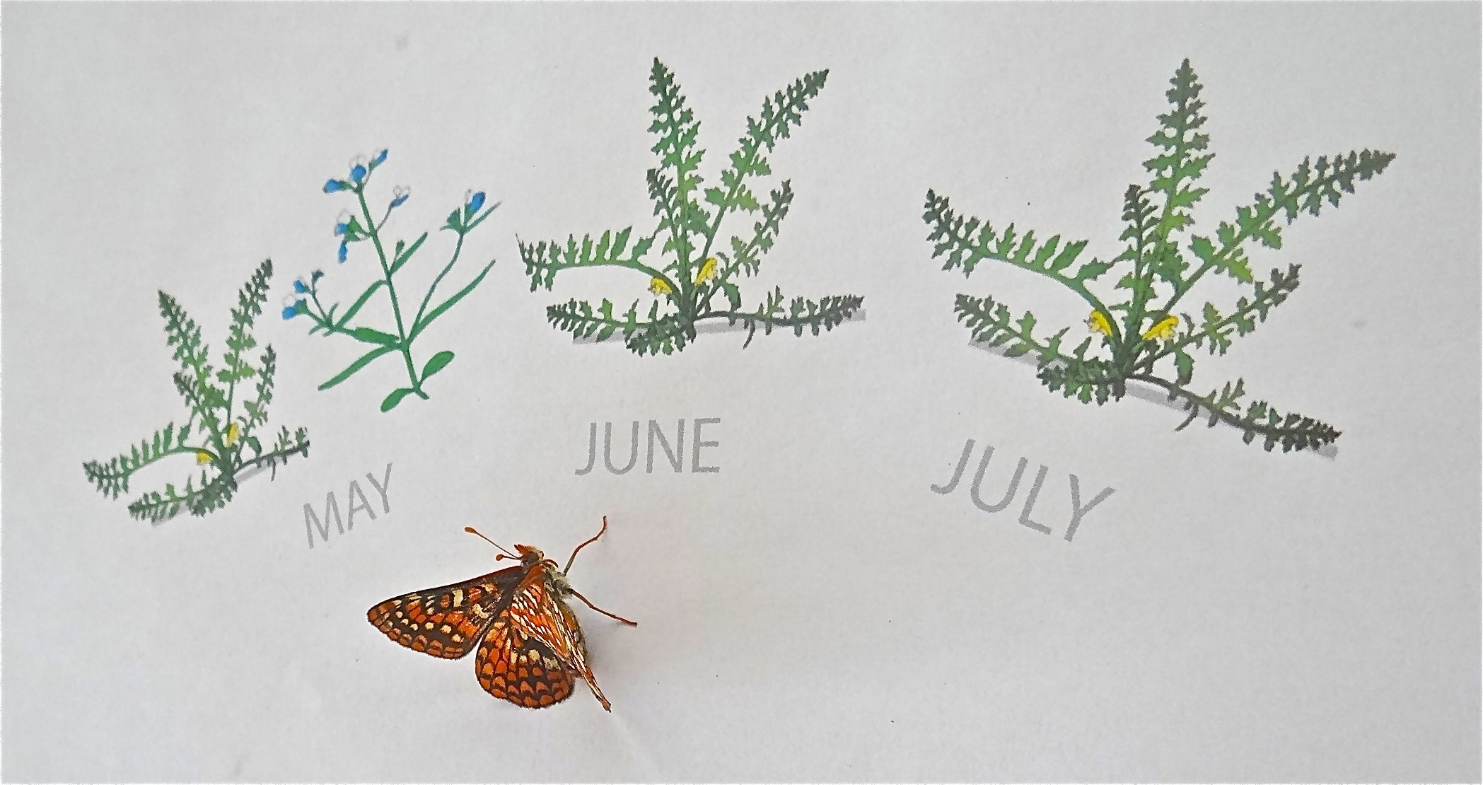 The reason for my visit to Woodside was to record the diet of the Bay Checkerspot butterfly, Euphydryas editha bayensis, a subspecies restricted to serpentine outcrops in and around the San Francisco Bay region, and a long-term subject of my PhD supervisor’s research (Paul Ehrlich). Thinking about the checkerspot allows me to shift to a happier climate story than Mr Romney’s joke. This species has a tendency to evolve to the outer limits of its climatic tolerances, even in the central parts of its range (Singer and Parmesan 2010; Singer 2017; see Box 1 below). As a result, it’s climate-sensitive, with climate-caused population extinctions recorded in the 1970’s and a geographic range that was already shifting significantly polewards and uphill in the 1990’s (Parmesan 1996). So, we might expect this butterfly to be in trouble, but it isn’t! Although two of its endangered subspecies (Quino and Bay Checkerspots) may bite the dust with changing climate, the species as a whole possesses multi-faceted ecotypic variation that gives its populations the opportunity to respond in situ to warming climate by changing their size, timing, host affiliation or geotaxis (Bennett et al 2015). Even subspecies that disappear should be reconstitutable from existing variation if their habitats were restored (Mikheyev et al 2013). In sum, despite its demonstrated climate-sensitivity, Edith’s checkerspot as a species is likely to prove more resilient than humans to continued warming.