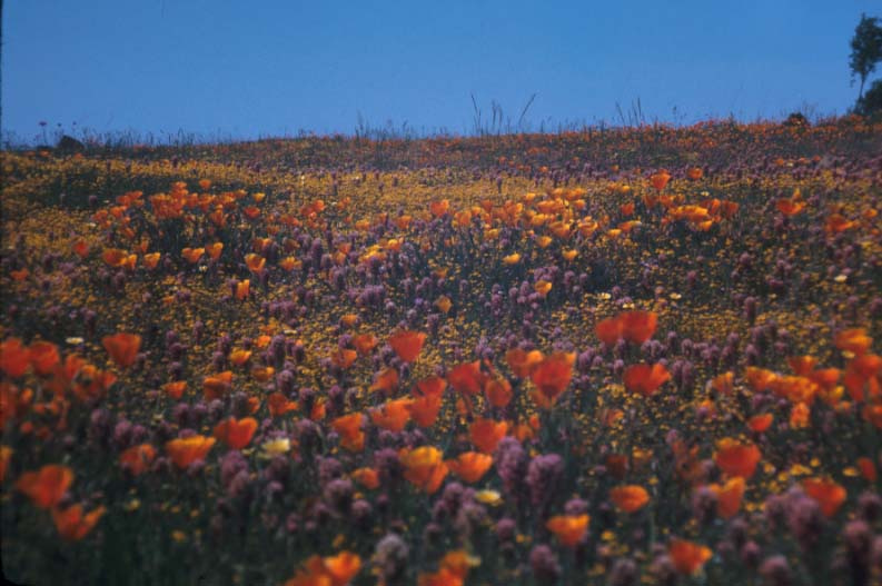 But do current residents of the San Francisco Bay region miss this spectacle? And do they blame the previous generation for removing it? I doubt it! I could be wrong, but I believe that this experience is simply gone and hardly anyone has noticed. I haven’t visited the floral displays in the Eastern California deserts that have been famous this year, but from images in the news they seem less intense and less speciose than my photo of the serpentine outcrop at Woodside, where the floral display was a predictable annual event, not a rare desert blooming.