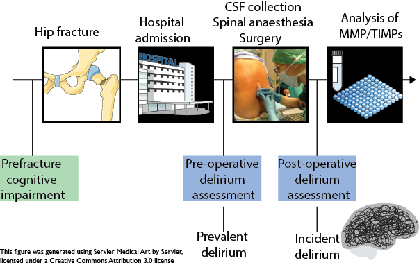 - One marker was associated with delirium, even when accounting for the influence of age, sex and dementia. This marker, TIMP-4, could be directly linked to changes in the brain that cause delirium. We speculate that low levels of this protein could reflect an insufficient response to acute damage and predispose patients to delirium.