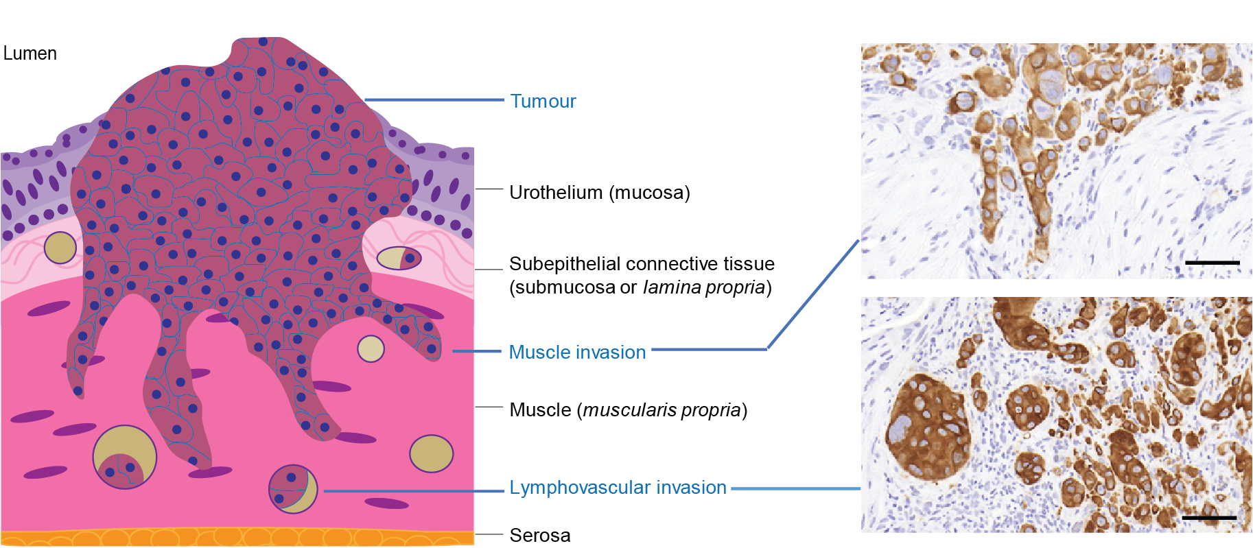 Surgical generation of orthotopic xenograft models that recapitulate the invasive progression of human bladder cancer.