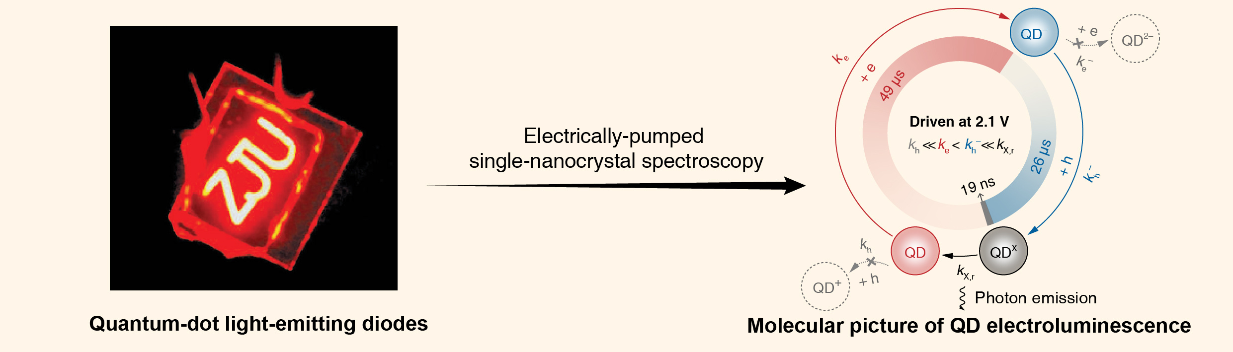 The past decade has witnessed remarkable progress on the performance of quantum-dot light-emitting diodes (QD-LEDs), which offer a promising solution for the next-generation display technology. Here in Zhejiang University, we are committed to addressing the fundamental challenges on the way of developing QD-LEDs that meet practical standards.