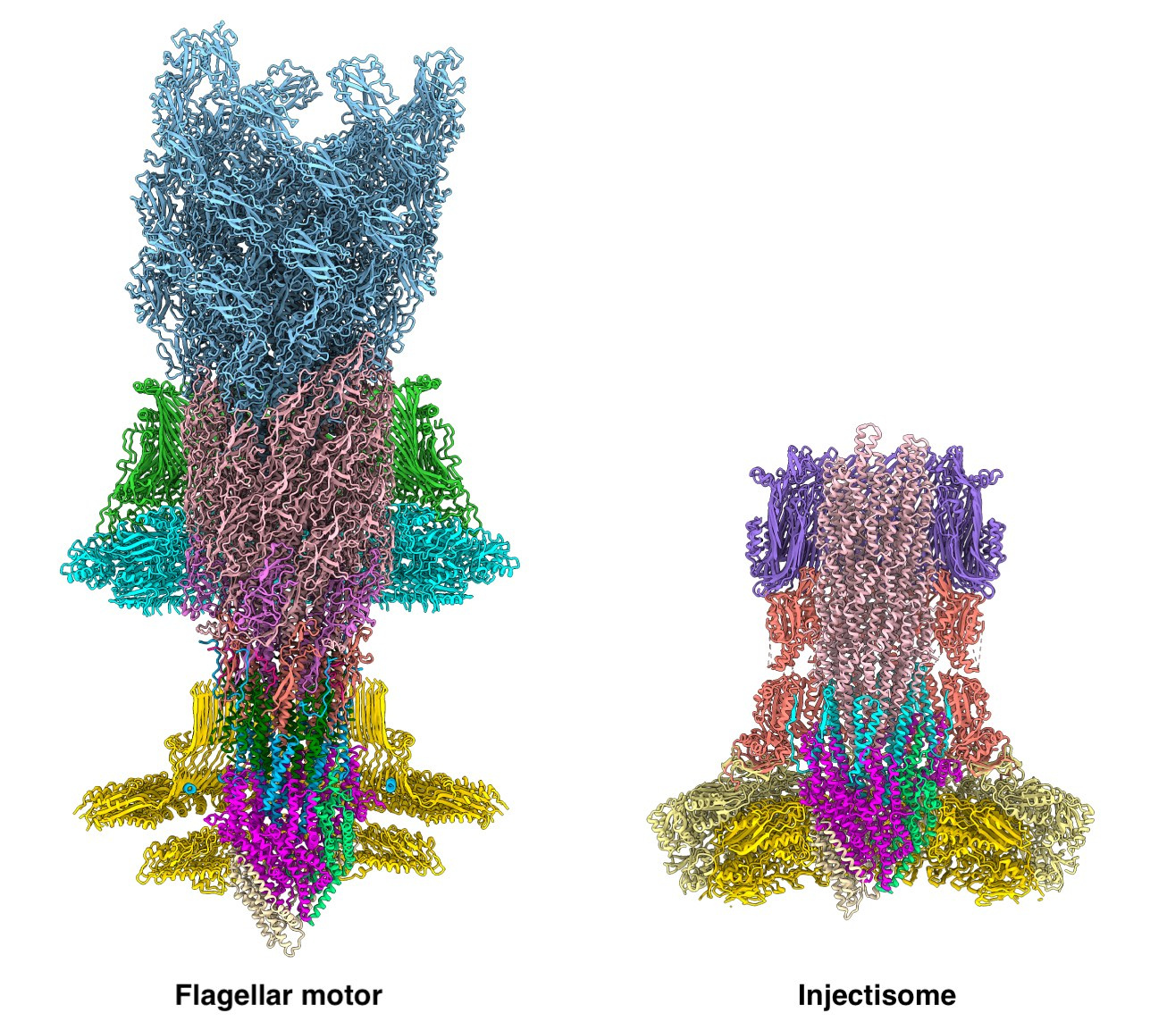 In the Cell paper published just a few day ago, a group of Chinese researchers published an atomic-level structure of the bacterial flagellar motor and compared it to the injectisome. These structures are shown in the figure below (kindly provided by Yonqun Zhu).