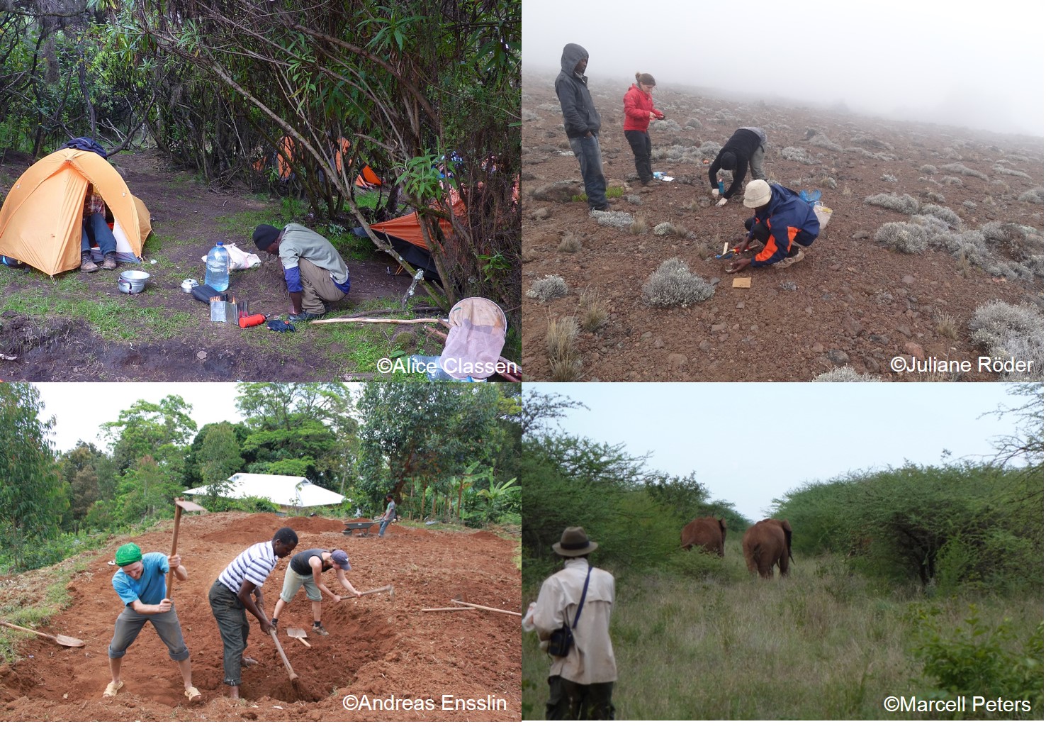 We were interested in the big picture and conducted a massive monitoring of microorganisms, vascular plants and animals - from snails and insects to large mammals. We worked on 60 study sites from the lowlands at 870 m to the highest places where you still find plants growing at ca. 4600 m asl. We also recorded 30 indicators of ecosystem functions such as soil nutrients, plant biomass and decomposition of leaf litter. This was all very laborious as just reaching the study sites often took several days of hiking up the mountain with a full equipment of tents, cookers and food on the back (and the measurement equipment!). Fortunately, our team was large – composed of 50 ambitious PhD students and senior scientists from Tanzania and Europe and supported by a staff of employees from the surrounding villages. The latter worked as drivers, cooks, porters, and field assistants and largely contributed to the success of the project.