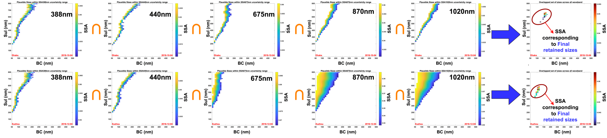 This study showcased, a potential method of integrating multi-platform data and robust theoretical constraint in developing detailed and dynamic microphysical, physical and optical information on BC. The inclusion of UV wavebands significantly improved sensitivity to smaller BC cores, leading to better characterization of fresh emissions in urban and industrial regions like Xuzhou and Dhaka. -