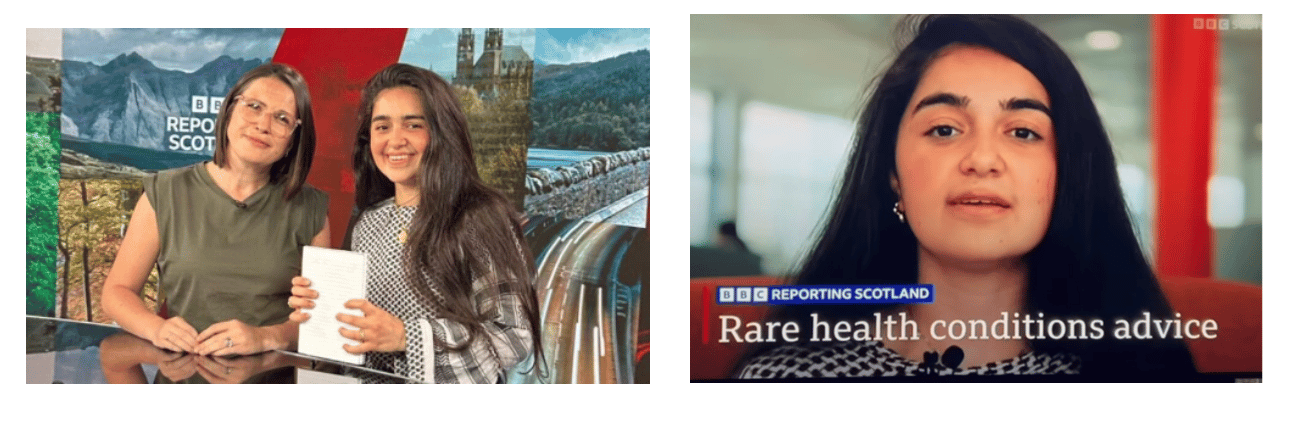 Once I decided to become vocal about rare conditions and my diagnosis, doors began to open. To some it may have appeared to be a simple essay competition, but the Student Voice Prize provided the platform from which I could begin to share my story with others. I had the opportunity to share my journey in a medical journal, bringing a personal perspective to the field of rare conditions to medical professionals who too often dismiss our diagnoses as a differential. I became an ambassador for rare conditions, working alongside charities and organisations such as Medics 4 Rare Disease and Beacon for Rare Diseases. Collaborating with EURORDIS, I became a European Yong Ambassador and shared my story in a series of podcasts and blogs showing that rare conditions warriors needn’t be limited by borders. Educating medical professionals and, more importantly, medical students who will be the next generation of healthcare professionals is core to the work that I do. To this end, I have collaborated with Osmosis, a medical education platform, to share my story and educate medical professionals on Myasthenia. I also shared my story nationally on BBC Scotland, using my voice to share on primetime news a topic which may seem negligible to others but is often the breaking news to families of patients with rare conditions. My aim is to raise awareness about the existence of rare conditions, emphasising that we needn’t expect doctors to know the minutiae of each rare disease diagnosis but at least acknowledge our existence and consider rare condition. Indeed, our conditions are rare. But rare does not mean impossible.