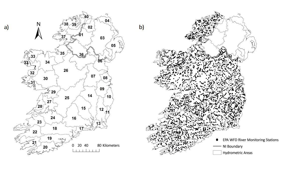 Our recent national macroinvertebrate dataset, collected for WFD purposes and just published in Scientific Data (https://doi.org/10.1038/s41597-020-00618-8), covers the period 2007 to 2018 and has over 10,000 unique data records. The majority of data were collected using a standard 2 minutes kick sample with benthic macroinvertebrates identified and roughly counted bank-side. These surveys have been vital in indicating the changes that pollution brings about in our river network and provides a valuable spatial and temporal dataset that highlights the changes and trends in Irish river systems, with significant relationships between the macroinvertebrate community present and measures of urbanization and agricultural intensity, densities of humans and cattle within a catchment, but also chemical indicators of water quality, namely molybdate-reactive phosphorus, ammonia, total oxidized nitrogen, biological oxygen demand, pH and conductivity.