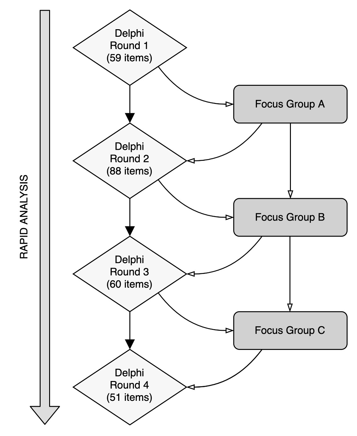 Study 1: Item Generation via DelFo: Given the lack of systematic research on psychedelic preparation, we recognised the need for a novel approach that would integrate the knowledge of psychedelic researchers with the priceless perspectives of individuals who have personally navigated psychedelic realms. This led to the creation of the "DelFo" method, an innovative fusion of the Delphi method and focus groups, specifically designed to stimulate meaningful conversations bridging scientific inquiry with lived experiences. In tackling the challenges of international recruitment and ensuring a diverse range of voices were heard, our journey through Study 1 was both challenging and immensely rewarding. The DelFo method allowed us to create a dynamic environment for consensus-building. The items that emerged from these sessions were not just items on a scale but reflections of a deep, shared understanding of psychedelic preparedness.