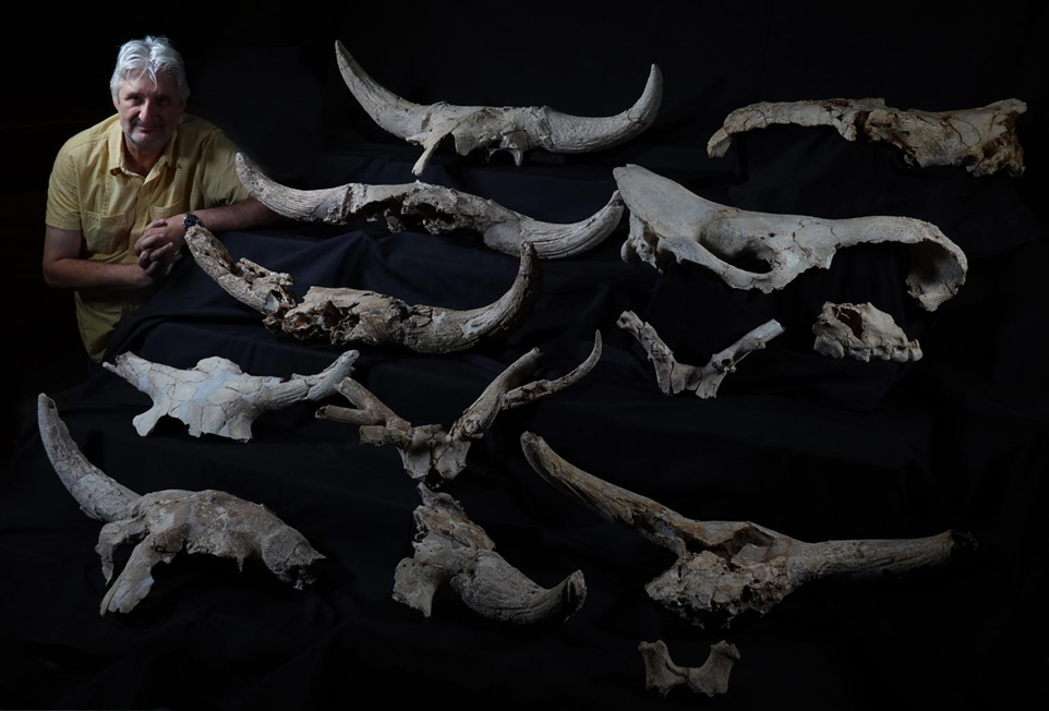 Enrique Baquedano and some of the Des-Cubierta crania found. © Javier Trueba