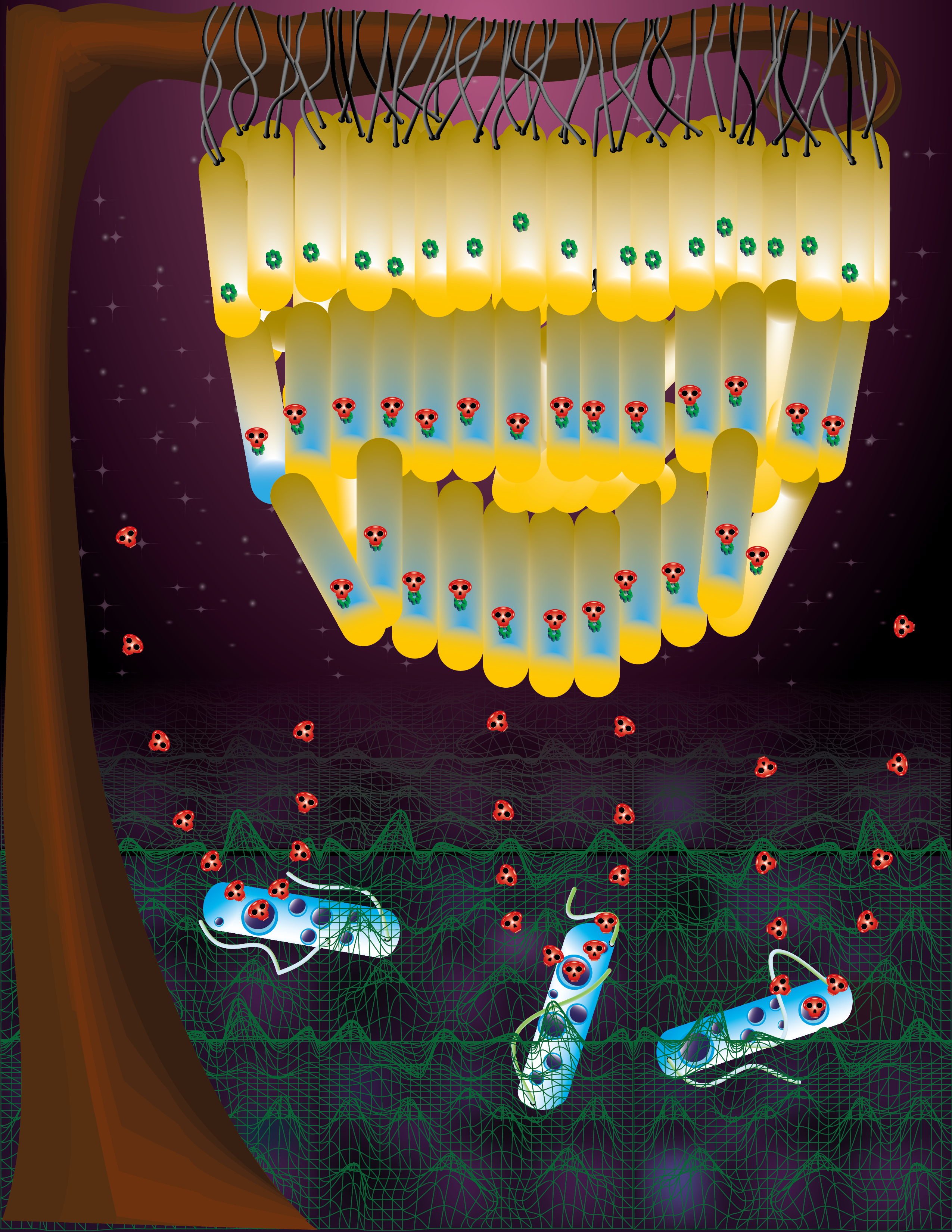 If the swarm is already prepared to combat antibiotics, what is the purpose of necrosignaling? We suspect this mechanism has evolved to gauge whether the environment is more lethal than supposed, more lethal than the baseline coping capacity of the assembled cellular defense. Necrosignaling appears to be the finger that pushes the panic button, raising the threat level to Red, so all hands can race to the deck.