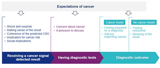 What does all this mean? If the future includes a blood test for multiple cancers offered as cancer screening, supporting those with a ‘cancer-signal’ found will be vital. Since expectations of cancer seem central to how people understand and make sense of this result, we can use this to design support, helping people to acknowledge and reflect on their expectations, and if necessary use relevant cognitive approaches (e.g. reframing thoughts, or Acceptance and Commitment Therapy) to help with this.