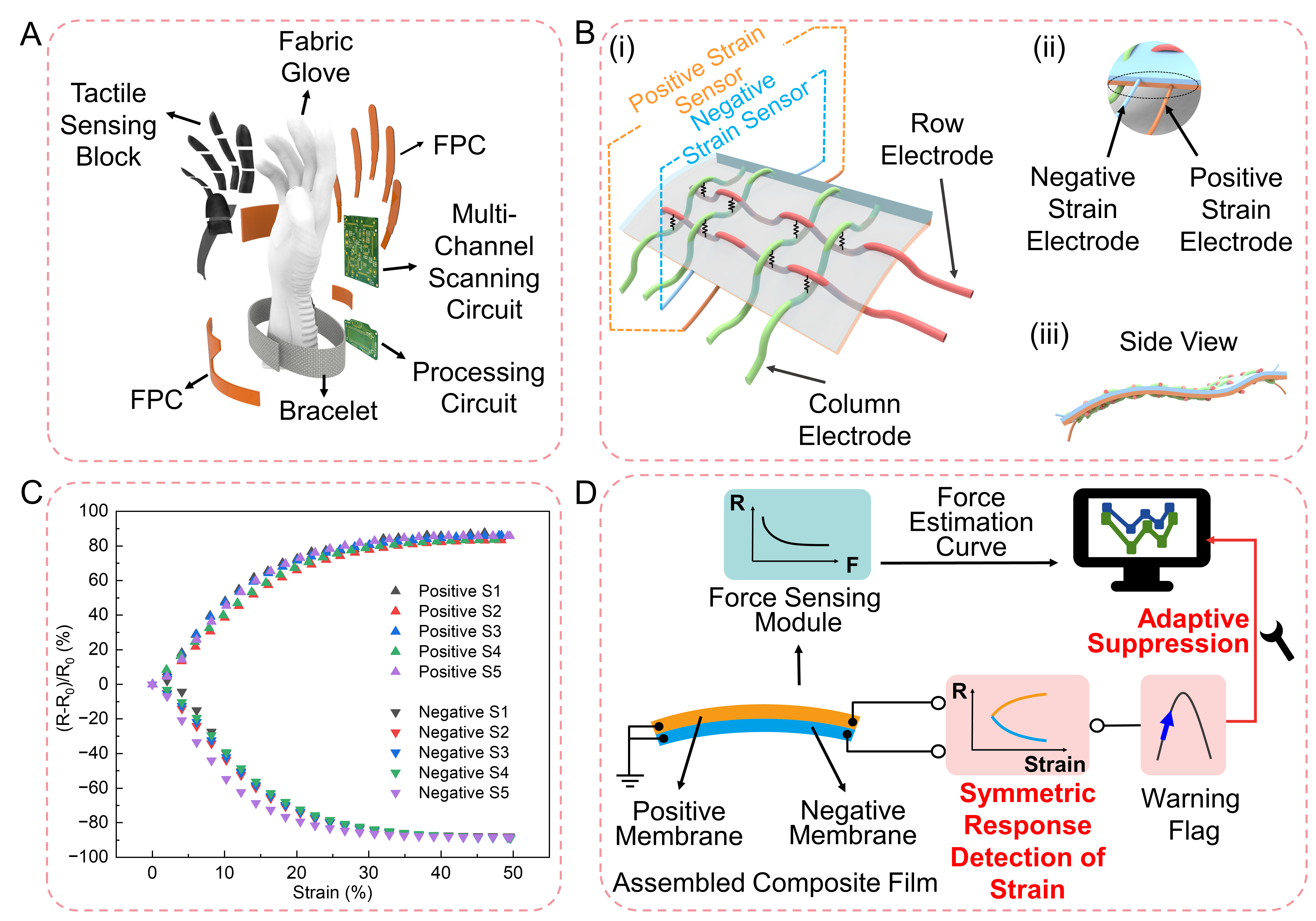 So, why is it so difficult to capture the interface forces on deformable objects? This is because, when the hand contacts a deformable object, not only is force applied, but the interface itself also experiences strain due to its stretchability. This strain is sometimes minimal and easy to overlook, yet it can interfere with the force-detection signals. Therefore, tactile sensors designed to sense the interface of deformable objects need to be capable of detecting both the pressure and deformation state in the contact area and adapting to the effects caused by the object’s surface deformation.