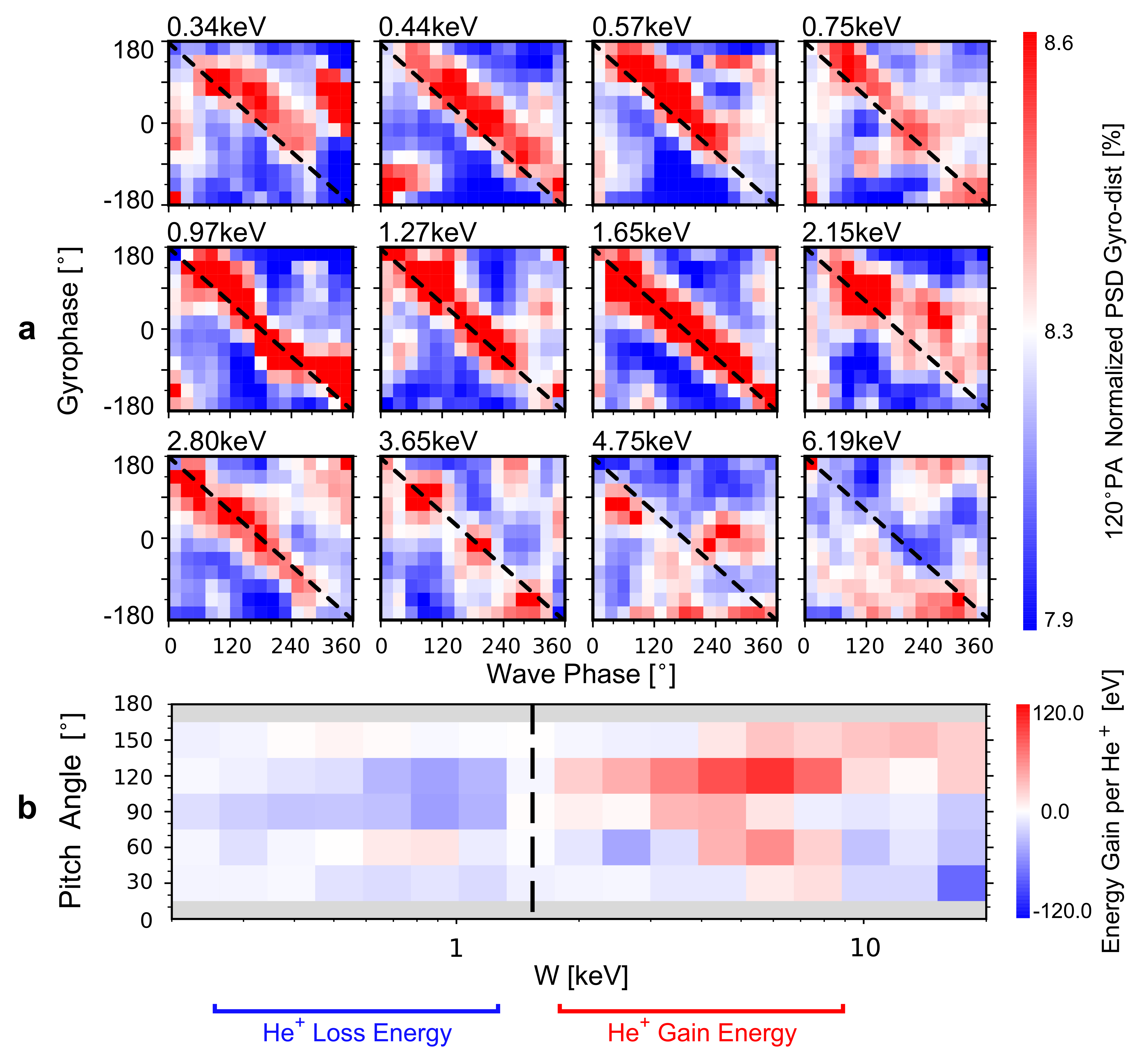 In the paper related to this blog post, we report two events, in which simultaneously interactions of ions, macroscale ULF waves and microscale EMIC waves are clearly observed (see Fig. 2 and 3 for observations in one event). The directly observed electric field and ion velocity distributions allow us to calculate the energy flow between ions and ULF waves, and the energy flow between ions and EMIC waves. The results show that, when energy flows from ULF waves to ions, ions’ velocity distributions become more anisotropic, which is a condition in favor of the excitation of EMIC waves. Indeed, EMIC waves with significant amplitude, together with energy flow directed from the anisotropic ions to EMIC waves, are observed at these times. Finally, the energy transferred to EMIC waves dissipates via further EMIC wave-induced ion energization (Fig. 3). It is interesting to note that in one of the two events (Fig. 2 and 3) the involved ions are helium ions, a minor species in terms of number density (2% of the number density of protons). Thus, both major and minor species can mediate cross-scale wave-particle interactions.