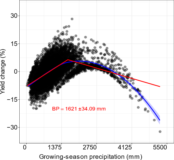 Nonlinear Response of Rice Yield to Rainfall