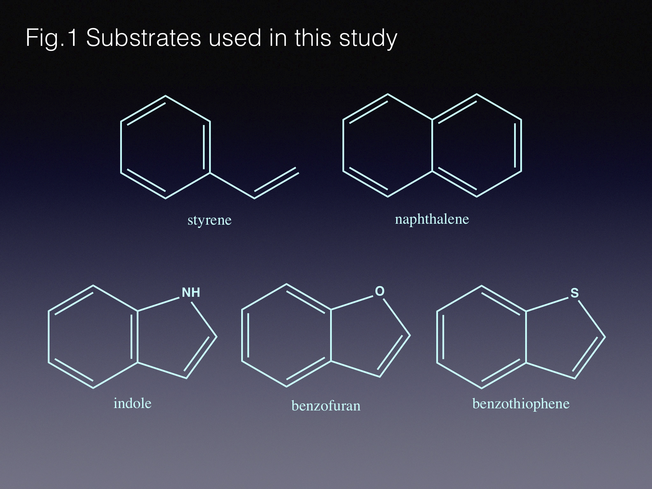 In this paper we look into biocatalytic routes for C-H functionalisation (through CO2-fixation) of a number of aromatic and heteroaromatic compounds. Some of these play part in polluting our natural resources (styrene, naphthalene), while others (N-, O- and S-containing heteroaromatics) serve as important “building blocks” for the chemical and pharmaceutical industries.