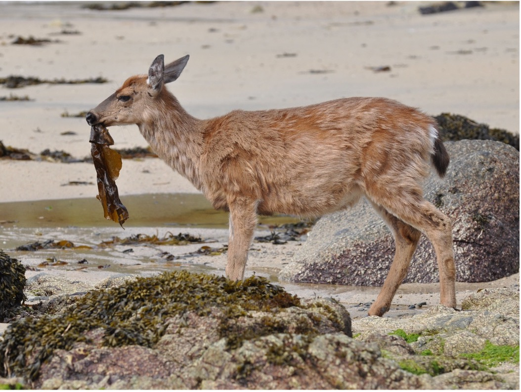 Although islands are home to disproportionally high levels of species richness, they also face elevated levels of species extinctions, largely driven by the introductions of non-native species. One such example is Sitka black-tailed deer (Odocoileus hemionus sitkensis) in Haida Gwaii, an archipelago off the western coast of Canada. Haida Gwaii has often been referred to as the ‘Canadian Galapagos’, due to its outstanding biodiversity and Indigenous culture, as the Haida Nation have long been stewards of the islands. Since the introduction of deer during western colonization in the late 1800s, the natural balance of life on Haida Gwaii has been disrupted, jeopardizing many of these relationships, as several of the deer’s favorite foods are also culturally important species (Fig. 1-3).