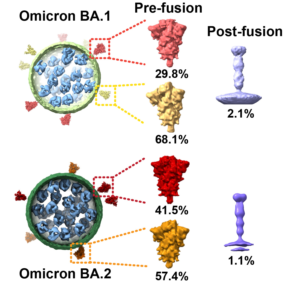 Figure 1. Architecture of Omicron variants BA.1 and BA.2, revealed by cryo-ET.
