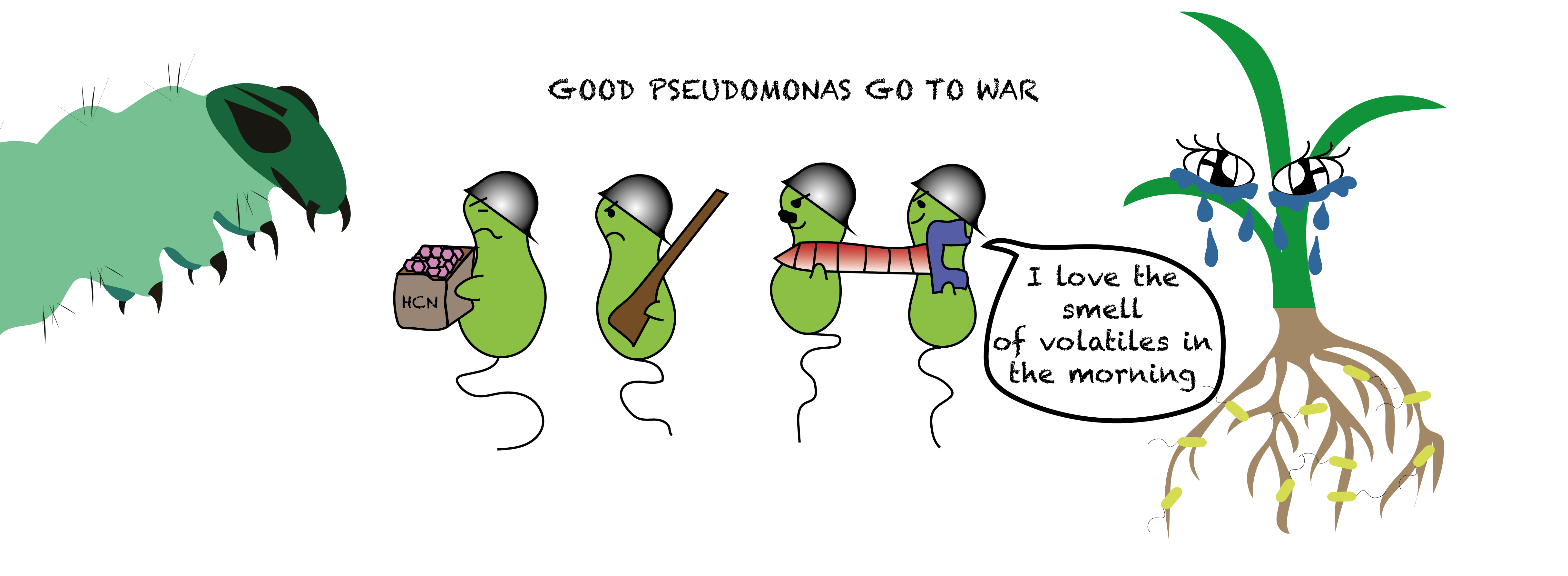 Our research underlines the fact that insecticidal activity in Pseudomonas is a multifactorial trait that involves many proteins and yet unknown regulatory factors. This shows the versatility and adaptability of the Pseudomonas genus and also makes these bacteria very interesting candidates for pest control since they can do both, control soil-borne pathogens and kill pest insects. Pseudomonas could be used to develop biopesticides or transgenic plants based on specific insecticidal traits… or, maybe, Pseudomonas applications will not follow the classical “one toxin, one product” dogma but will be part of more integrative systems that involve living organisms e.g., bioinoculants, or that rely on combinations of the bacteria with other biocontrol microbes such as entomopathogenic fungi or nematodes. Moreover, Pseudomonas are multitasking beneficial bacteria so they are the perfect candidates for a multipurpose application, e.g to control pests, pathogens and promote plant growth which could boost crop yield.
