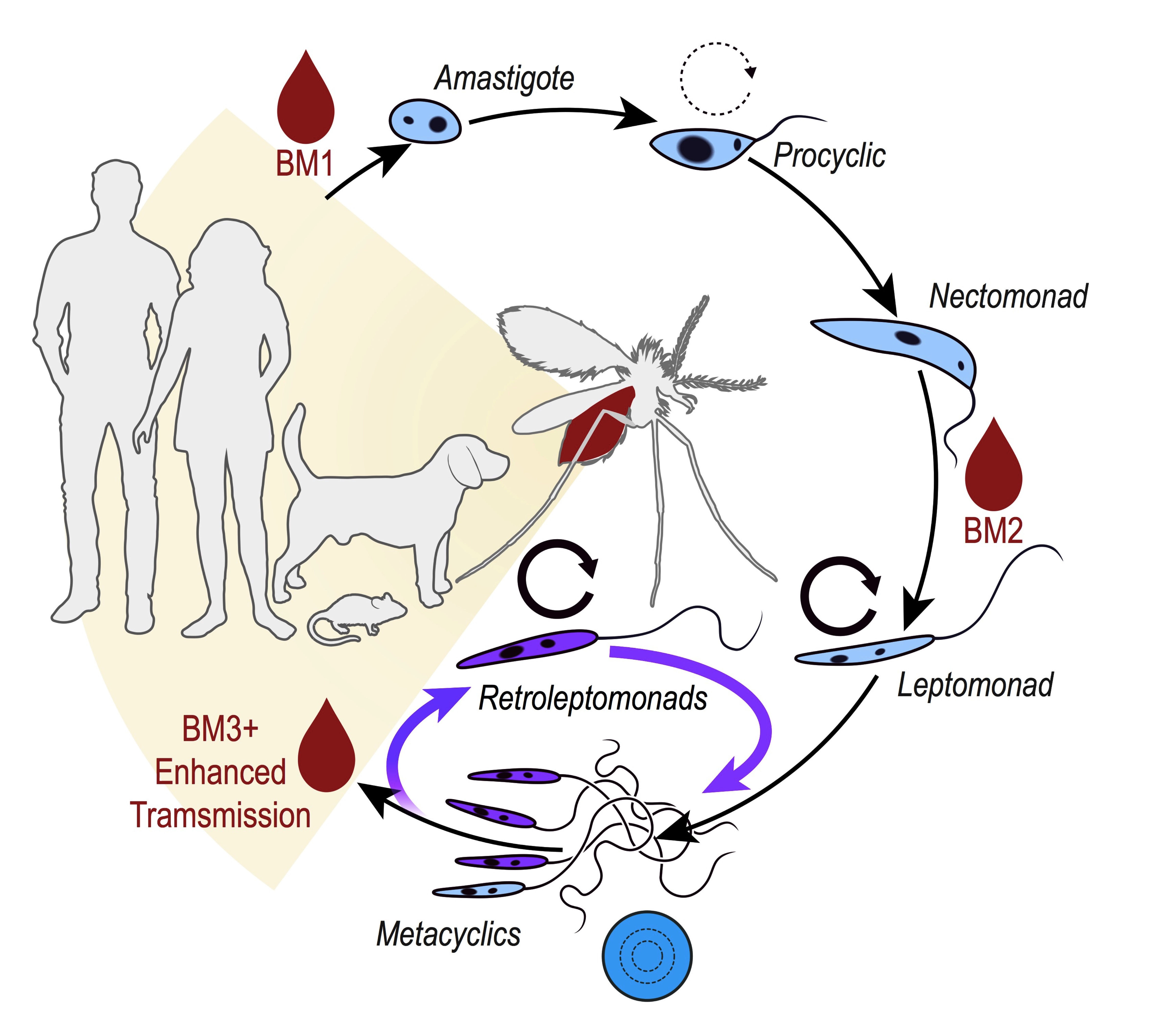 Until this study, infectious metacyclics were considered as terminally differentiated forms that arise after days of development inside the vector through a phenomenon we know as metacyclogenesis. However, to our amazement, after a transmission event (when the sand fly takes a subsequent bloodmeal), the remaining metacyclics inside the sand fly rapidly dedifferentiated (or reverted) to a multiplicative stage that we named “retroleptomonad promastigote”, through a phenomenon we called reverse metacyclogenesis.