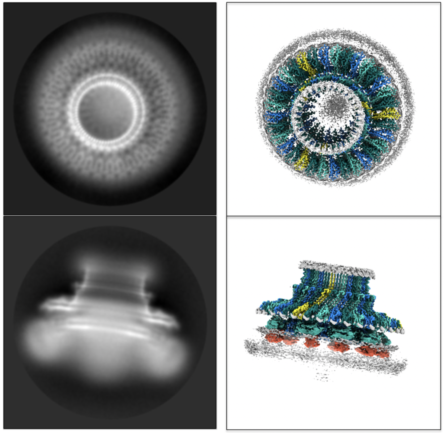 Fig. 1. Representative 2D averages of the Flagellar MS-ring and equivalent views of the structure