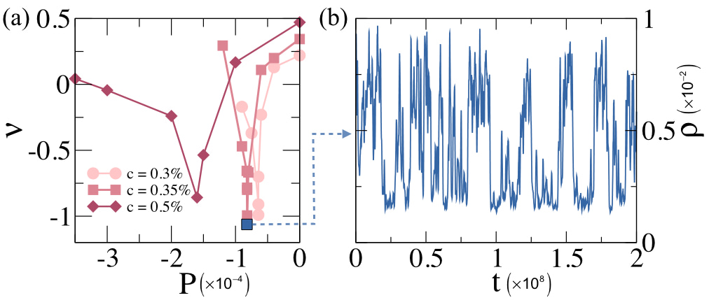 Strikingly, we observe that for a crosslinker concentration below 1%, we are able to reach the mechanical stability point of solids, that we refer to as hyper-auxeticity, as we show in Fig.1 (a). Then, we identify that, concurrently with the mechanical instability, a critical-like behavior emerges, presenting very similar features to those found in systems undergoing a gas-liquid phase separation such as the divergence of the isothermal compressibility (or a corresponding vanishing bulk modulus) and critical-like density fluctuations of the network between high-density and low-density states, as shown in Fig. 1(b).