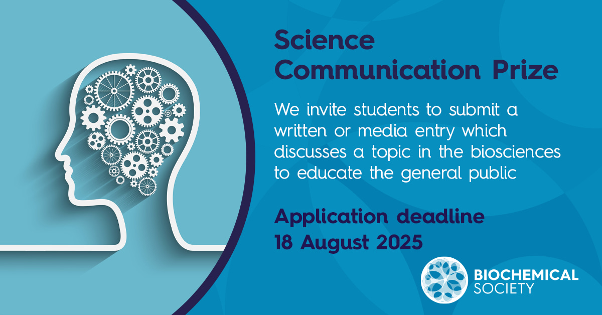 The Biochemical Society are looking to identify and celebrate outstanding science communicators through their annual Science Communication Prize. Deadline 18th August 2025.