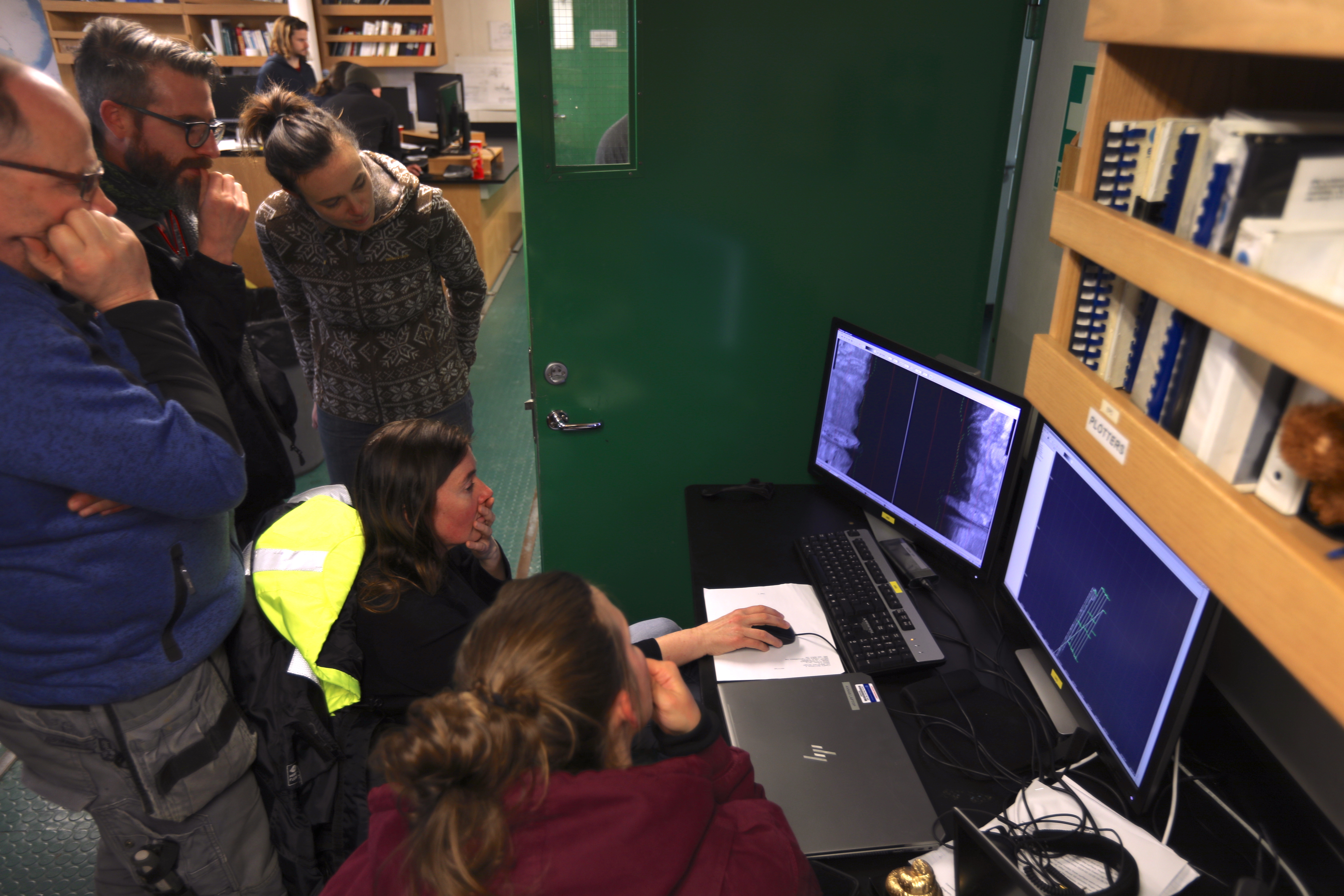 We deployed and recovered the AUV from the stern of the vessel, using small zodiac boats and grapples to reign in the vehicle. In choppy waters, high winds, and icy seas, and without a dedicated launch and recovery system, this was a challenging task made to look easy by the Palmer’s expert crew, marine technicians and the AUV’s Swedish support team. Over two extended survey missions, we targeted submarine troughs previously hypothesised as conduits for warm water access to the glacier grounding line. At both sites, the sea-floor also comprised of sills that likely served as former stabilising points for the grounding zone of Thwaites. Ran collected stunning imagery of the sea floor, including geomorphological features formed by Thwaites Glacier in the past that are the focus of the present paper, published in Nature Geoscience. The AUV also obtained invaluable data on the whereabouts and circulation of warm ocean currents in the Thwaites vicinity (published recently in Science Advances15). Both missions included forays under the floating ice tongue, making this expedition pioneering as the first scientific deployment of any kind into the Thwaites ice shelf cavity.