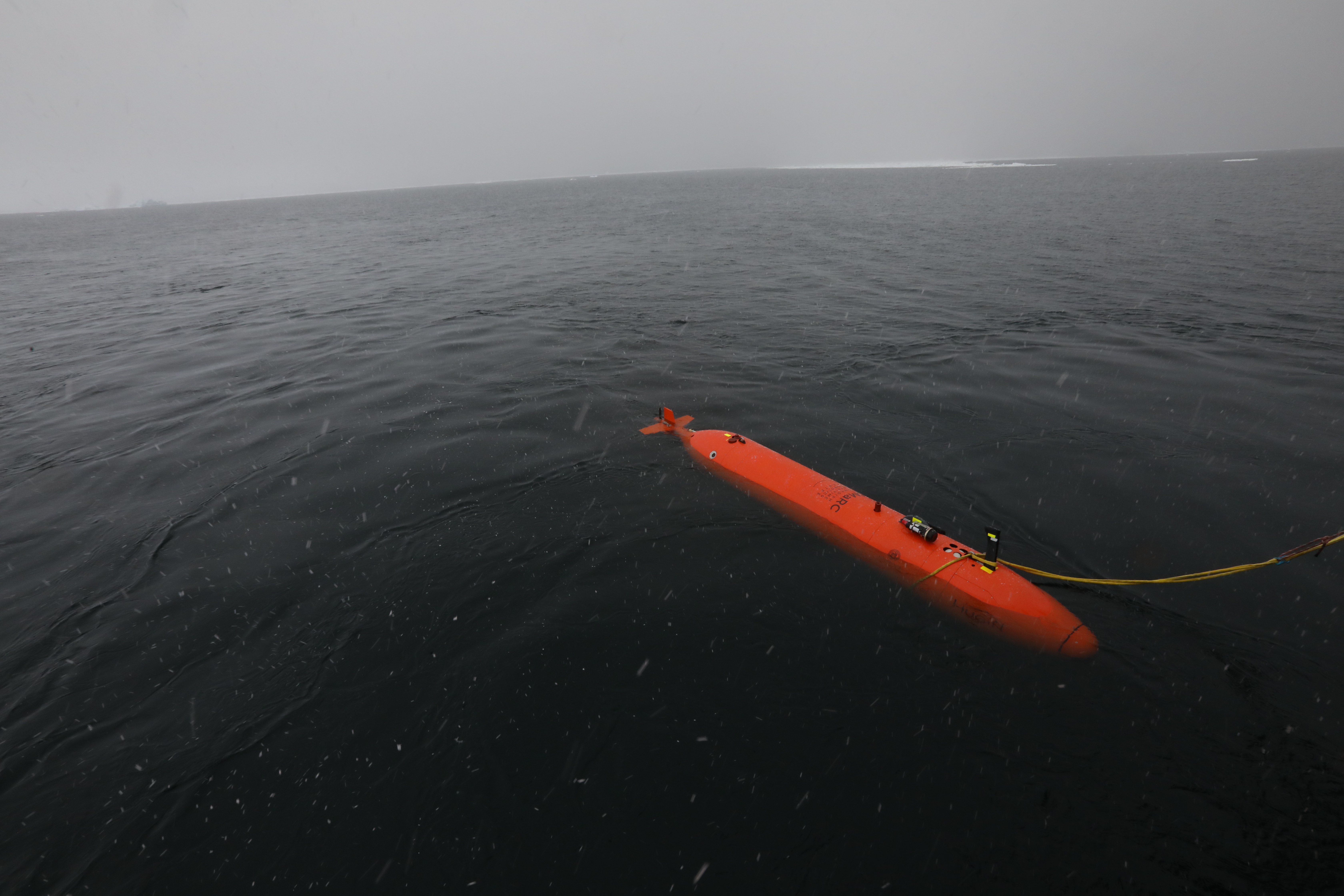 Orange submarine 'Rán' explores the sea floor in front of Antarctica’s Thwaites Glacier