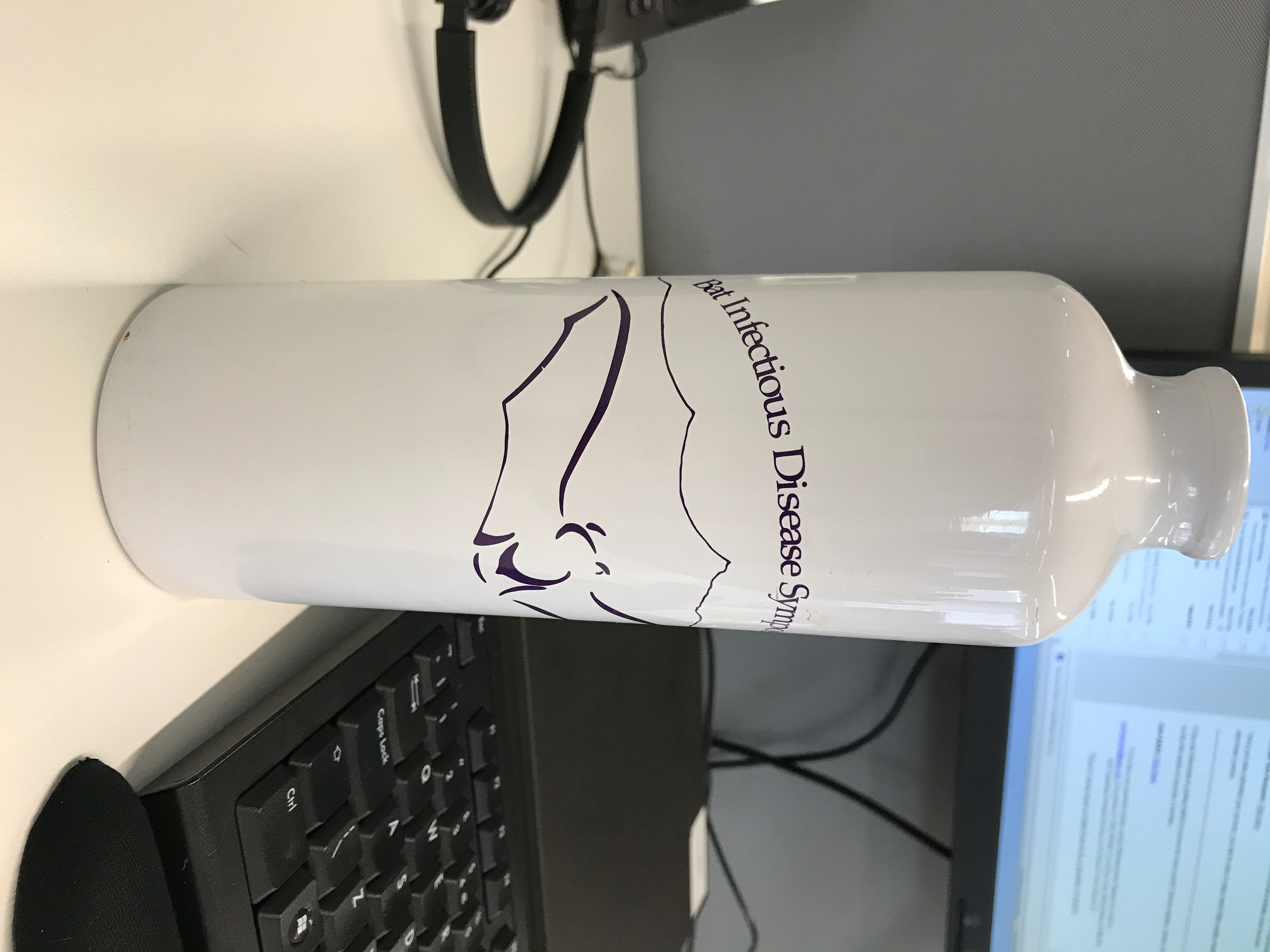 I regularly use my Bat Infectious Diseases Symposium 2014 water bottle in the Nature office - it's a good conversation piece.