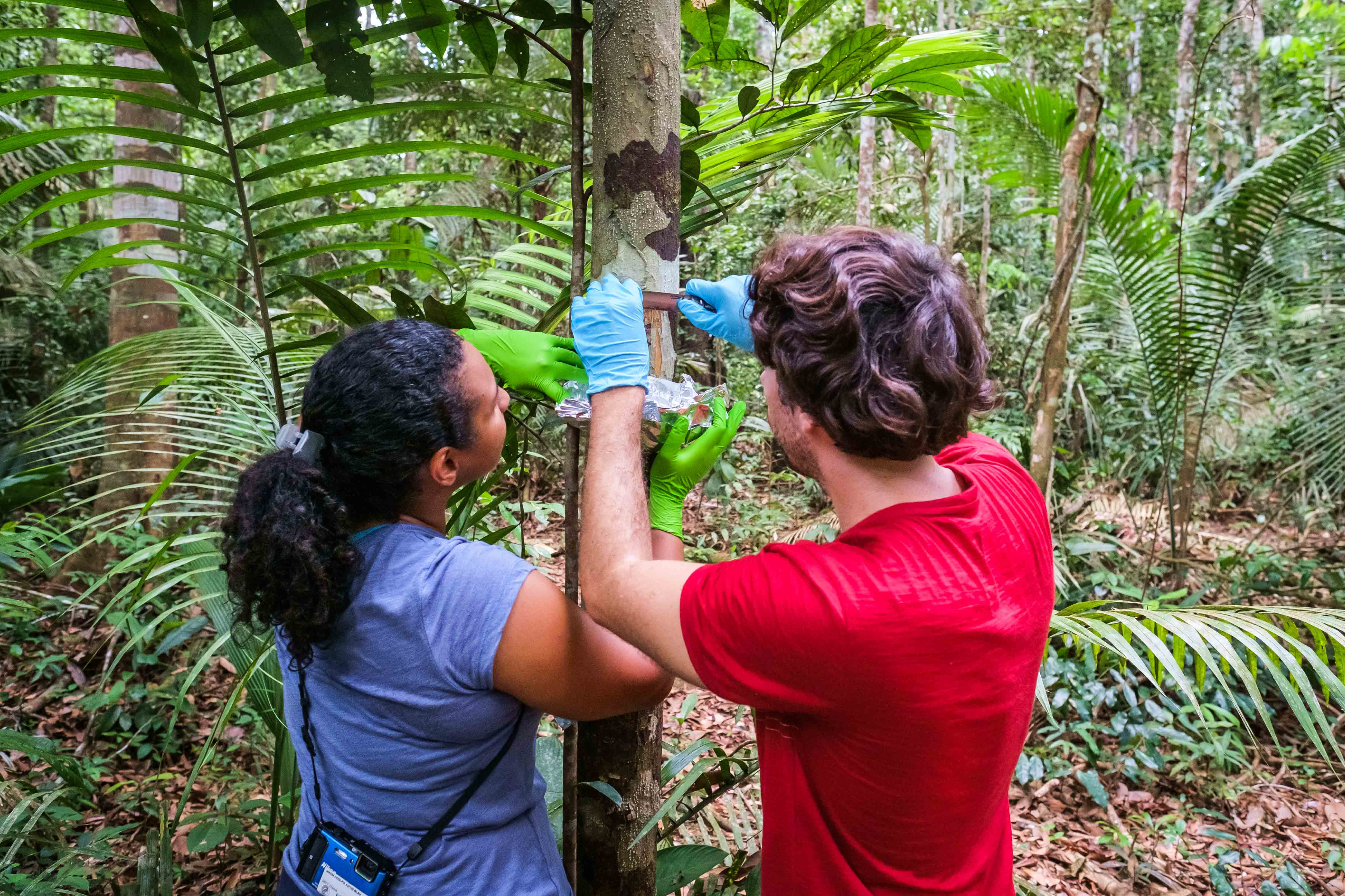 Our research regarding this question was carried out at the ATTO site, which is a remote pristine Amazon rainforest site located around 150 km northeast of Manaus (Brazil). Getting there from Manaus is already an adventure in itself. The journey consists of dirt roads and several hours of boat travel and takes at least half a day. During the wet season, when the water level in the river is high, the boat ride shortcuts through a flooded forest which is always a highlight of the trip. Upon arrival at the ATTO camp you are greeted by the local Brazilian staff who keep the site running. Facilities are basic but very enjoyable. It is quite surprising how cozy it can be to sleep in a hammock while listening to the sounds of the rainforest.