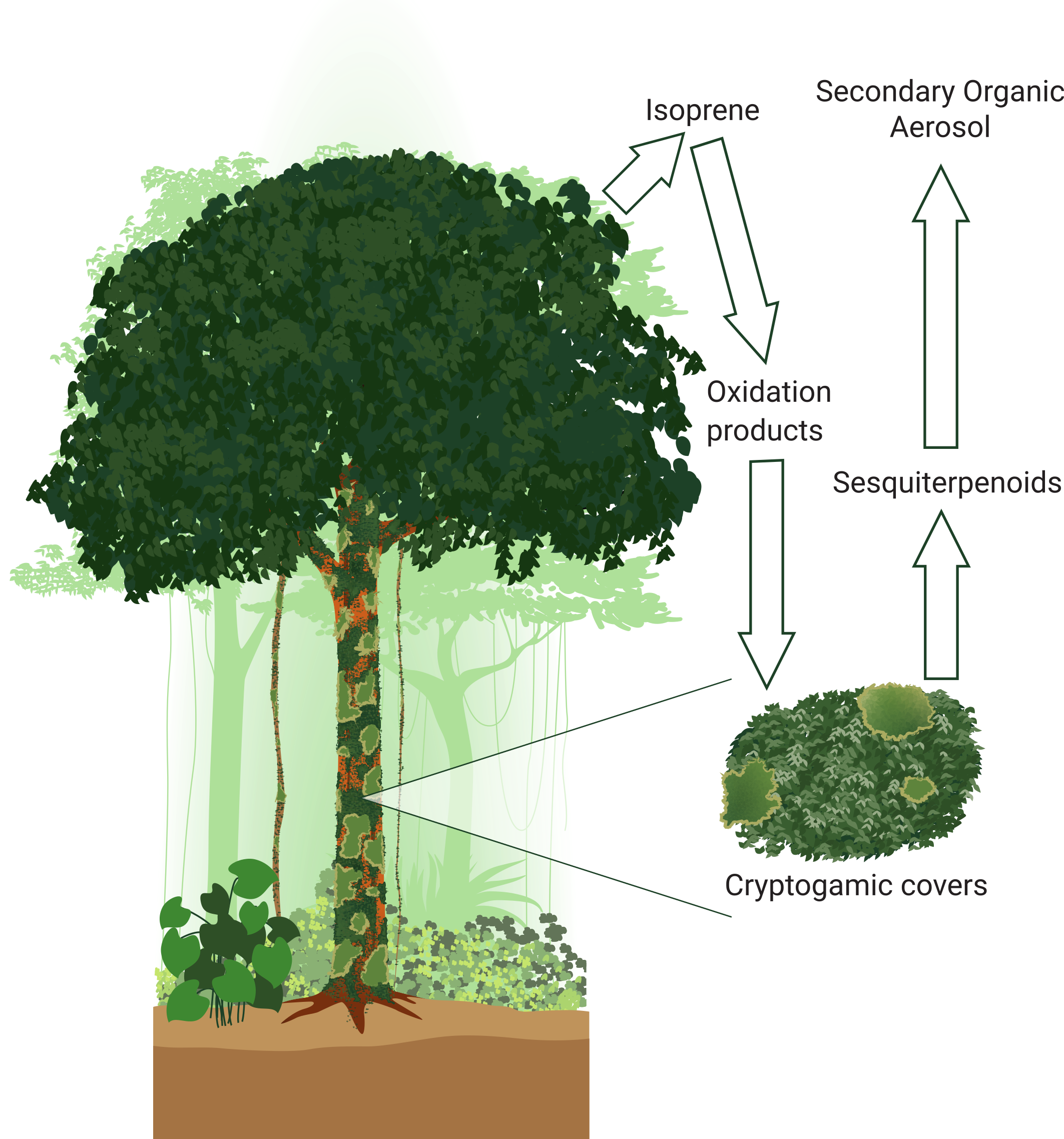 To date, BVOC emissions from tropical forest are assumed to be originating from the leaves of trees. So, we wondered whether the extensive cryptogamic cover on tropical trees itself might play a role in the emission of BVOCs.
