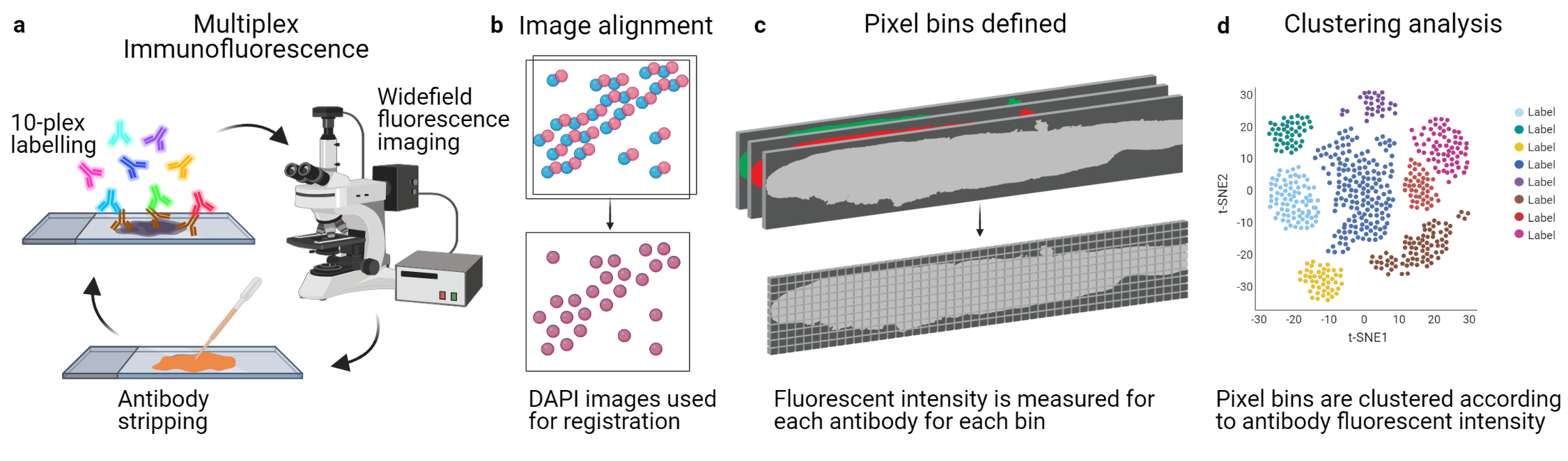 In our paper, we present an expanded and efficient multiplexed fluorescence-based immunohistochemistry approach that maintains throughput by labelling up to 10 antibodies per cycle, with no limitation on the number of cycles, and maintains versatility and accessibility by using readily available commercial reagents and standard epifluorescence microscopy imaging8.