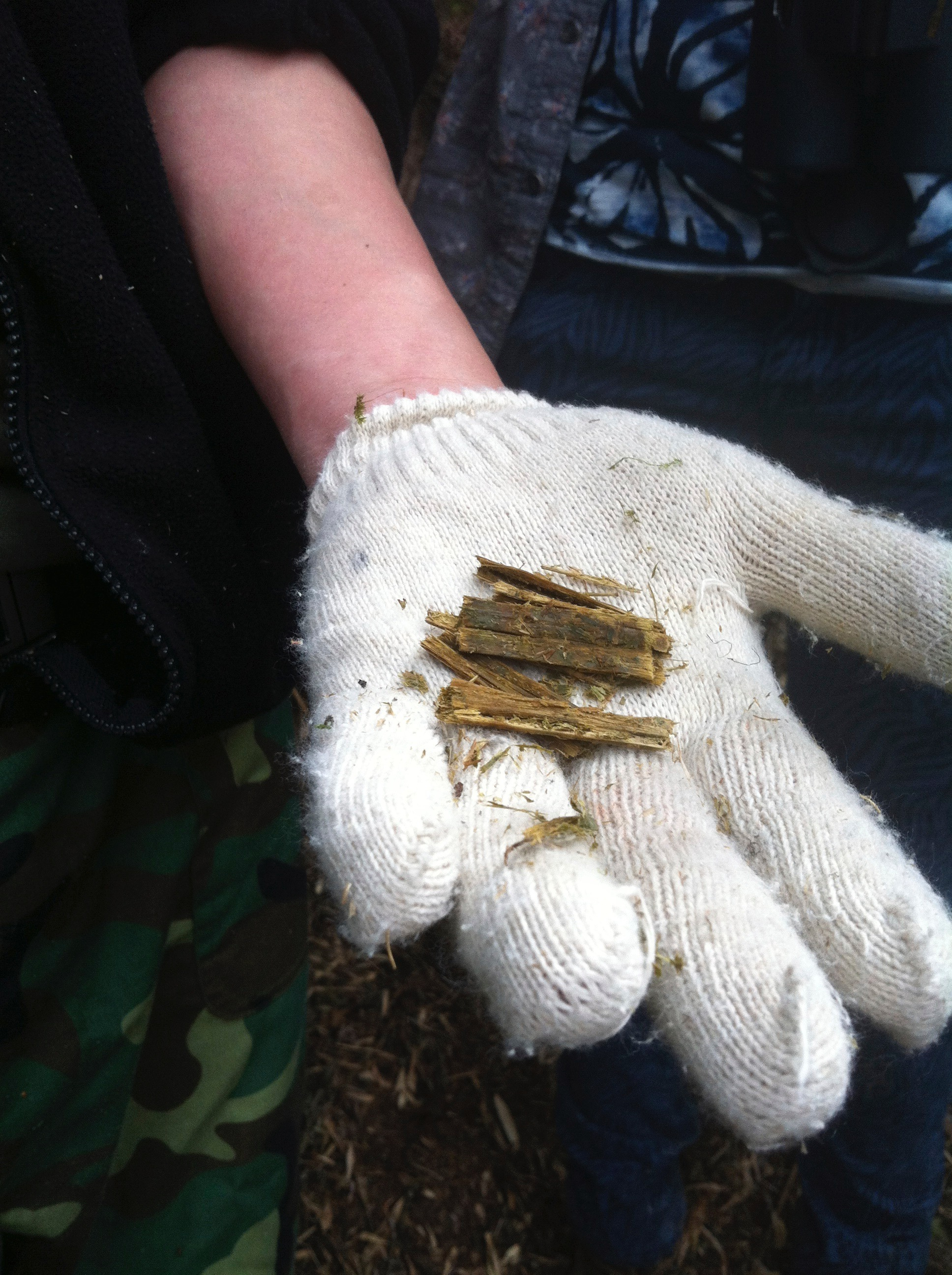 There was what they charmingly call “panda poops” lying in piles in an opening where the bamboos had been flattened down. They weren’t smelly, indeed, smelled of fresh bamboo, and were neat packets of what looked like the barely digested grass. We’d missed the panda, but not by long.
