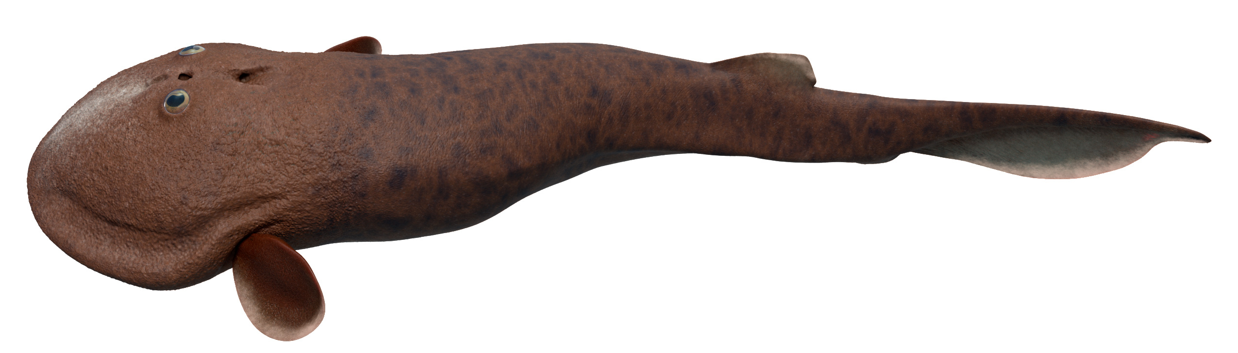 Another example is in the attachment area for pectoral fins. There was a region of unfinished bone in the previous specimen of Norselaspis, which was interpreted to have been capped by an articular cartilage. Implication: osteostracans had a synovial joint. It has been cited as key evidence for the deeper origin of skeletal joints in vertebrates before jaws. Our scan of the new specimen showed that this, too, was a damage to the original specimen. Implication: synovial joints evolved in jawed vertebrates, presumably at the mandibular hinge and/or between segments of the branchial arches*. In Norselaspis, the pectoral fins had a fleshy base, and they were tilted in angles off horizontal plane, suggesting their role in controlling drag rather than being a simple lift surface.