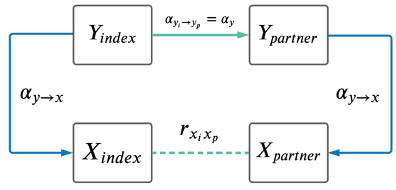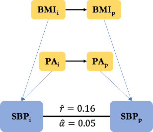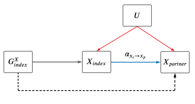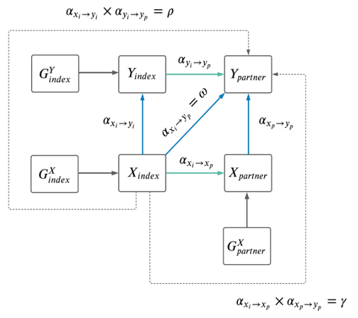 Finally, our mediation analysis revealed that most causal associations between different traits in the two partners are indirect. For example, the apparent causal effect of TV watching of an individual (Xindex) on the BMI of its partner (Ypartner) is due to primary assortment for TV watching between partners combined with the impact of increased TV watching leading to increased BMI within the same individual.