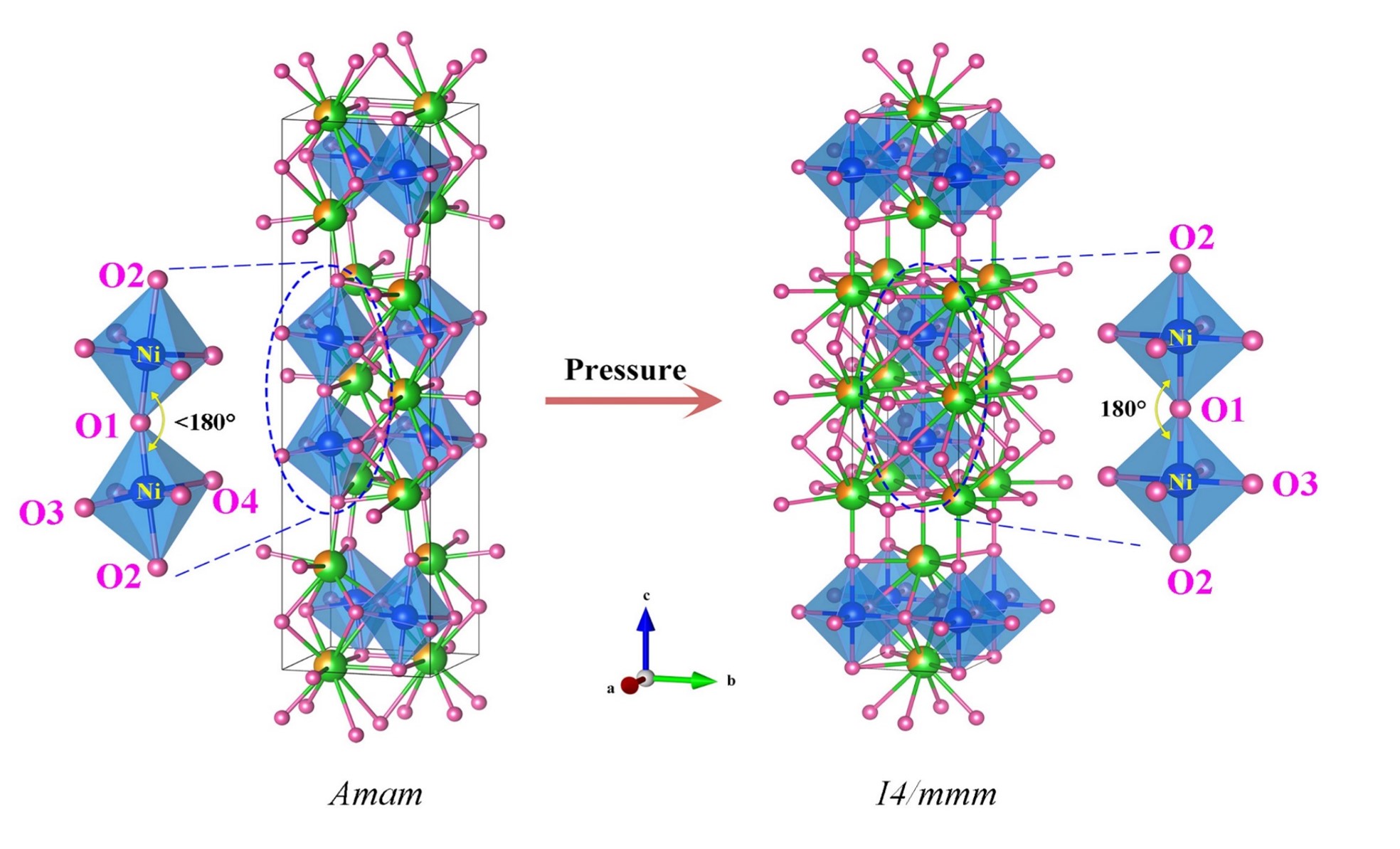 In contrast, applying physical pressure uniformly compressed the lattice and progressively straightened the Ni-O-Ni bond angle toward 180°. This structural adjustment was critical for driving the orthorhombic-to-tetragonal transition. Density functional theory (DFT) calculations corroborated these experimental observations, emphasizing that physical pressure acts as a more direct and effective mechanism for enabling the structural transformation required for superconductivity.