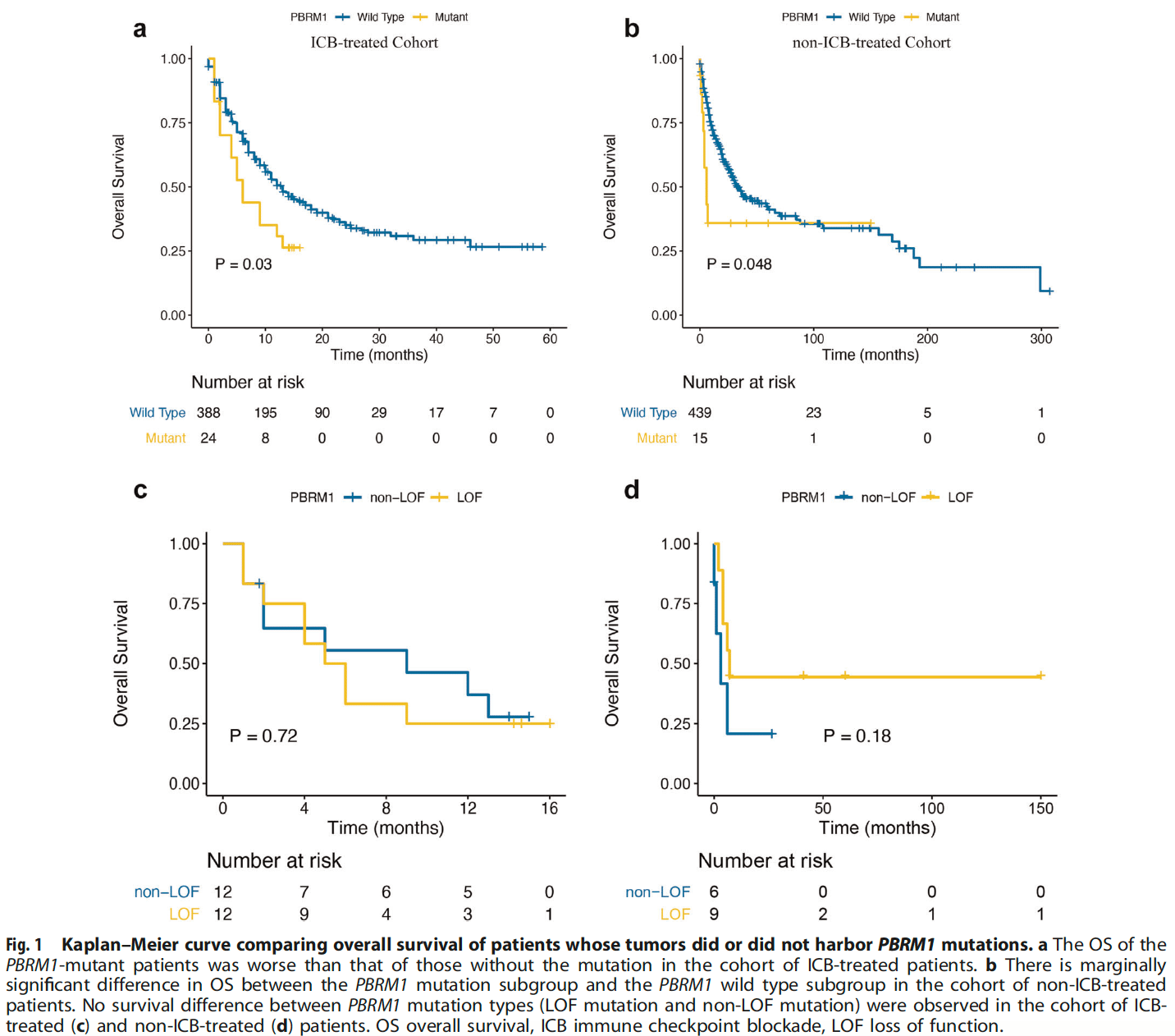 Polybromo-1 (PBRM1) gene has been reported as a promising biomarker for immunotherapy in clear cell renal cell carcinoma (ccRCC). As was reported by Miao et al., loss-of-function PBRM1 mutation was associated with clinical benefit from immunotherapy for ccRCC in both the discovery cohort (P = 0.012) and the validation cohort (P = 0.0071).1 This study was supported by Braun et al. in JAMA Oncology.2 According to Braun et al., the prevalence of PBRM1 mutation was 29% in nivolumab-treated patients and 23% in everolimus-treated patients. Truncating PBRM1 mutations were correlated to response to and clinical benefit from immunotherapy in ccRCC. Progression-free survival (PFS) and overall survival (OS) after programmed death-1 (PD-1) inhibitor therapy was also longer in patients with PBRM1 mutation.