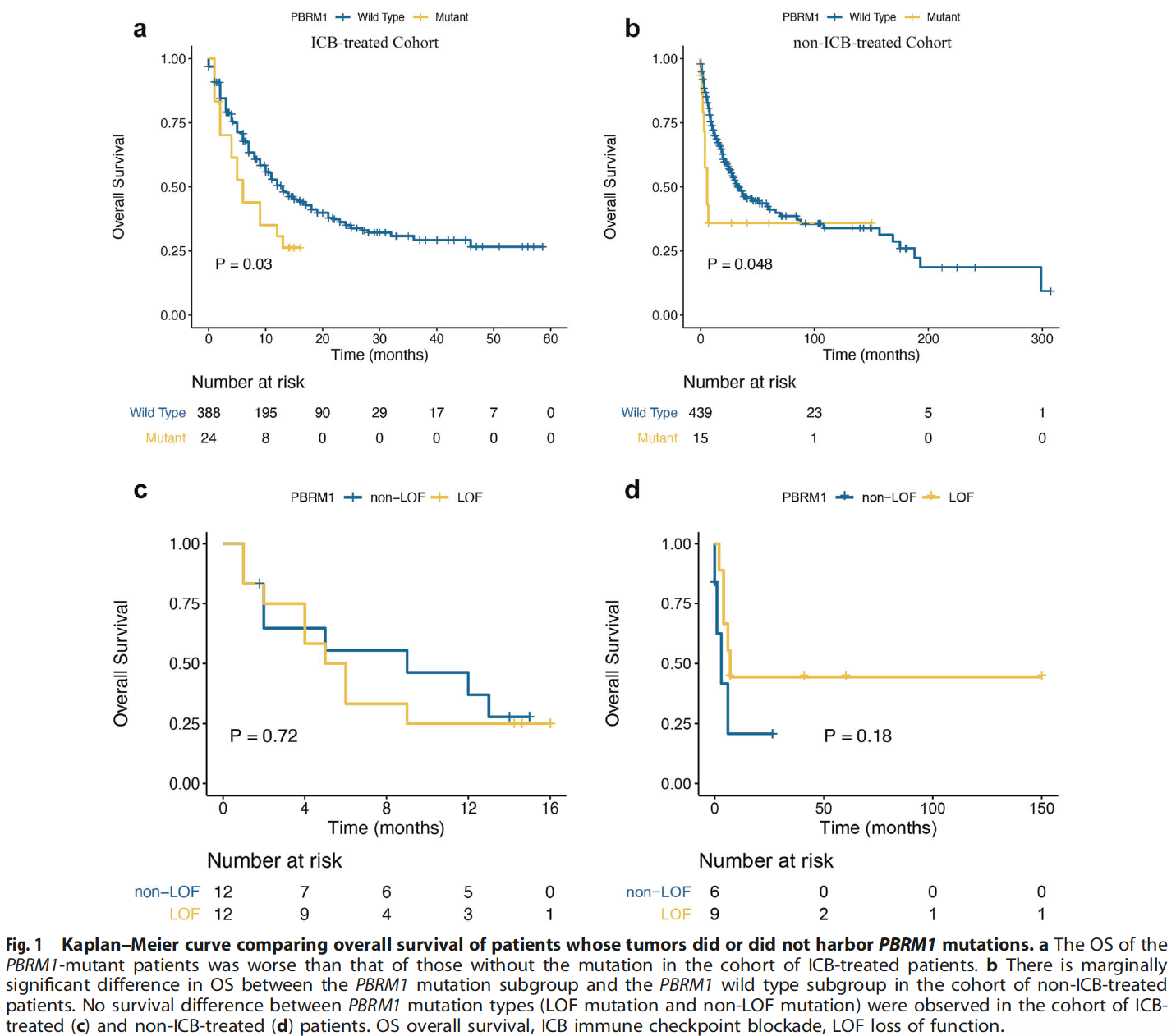 Polybromo-1 (PBRM1) gene has been reported as a promising biomarker for immunotherapy in clear cell renal cell carcinoma (ccRCC). As was reported by Miao et al., loss-of-function PBRM1 mutation was associated with clinical benefit from immunotherapy for ccRCC in both the discovery cohort (P = 0.012) and the validation cohort (P = 0.0071).1 This study was supported by Braun et al. in JAMA Oncology.2 According to Braun et al., the prevalence of PBRM1 mutation was 29% in nivolumab-treated patients and 23% in everolimus-treated patients. Truncating PBRM1 mutations were correlated to response to and clinical benefit from immunotherapy in ccRCC. Progression-free survival (PFS) and overall survival (OS) after programmed death-1 (PD-1) inhibitor therapy was also longer in patients with PBRM1 mutation.