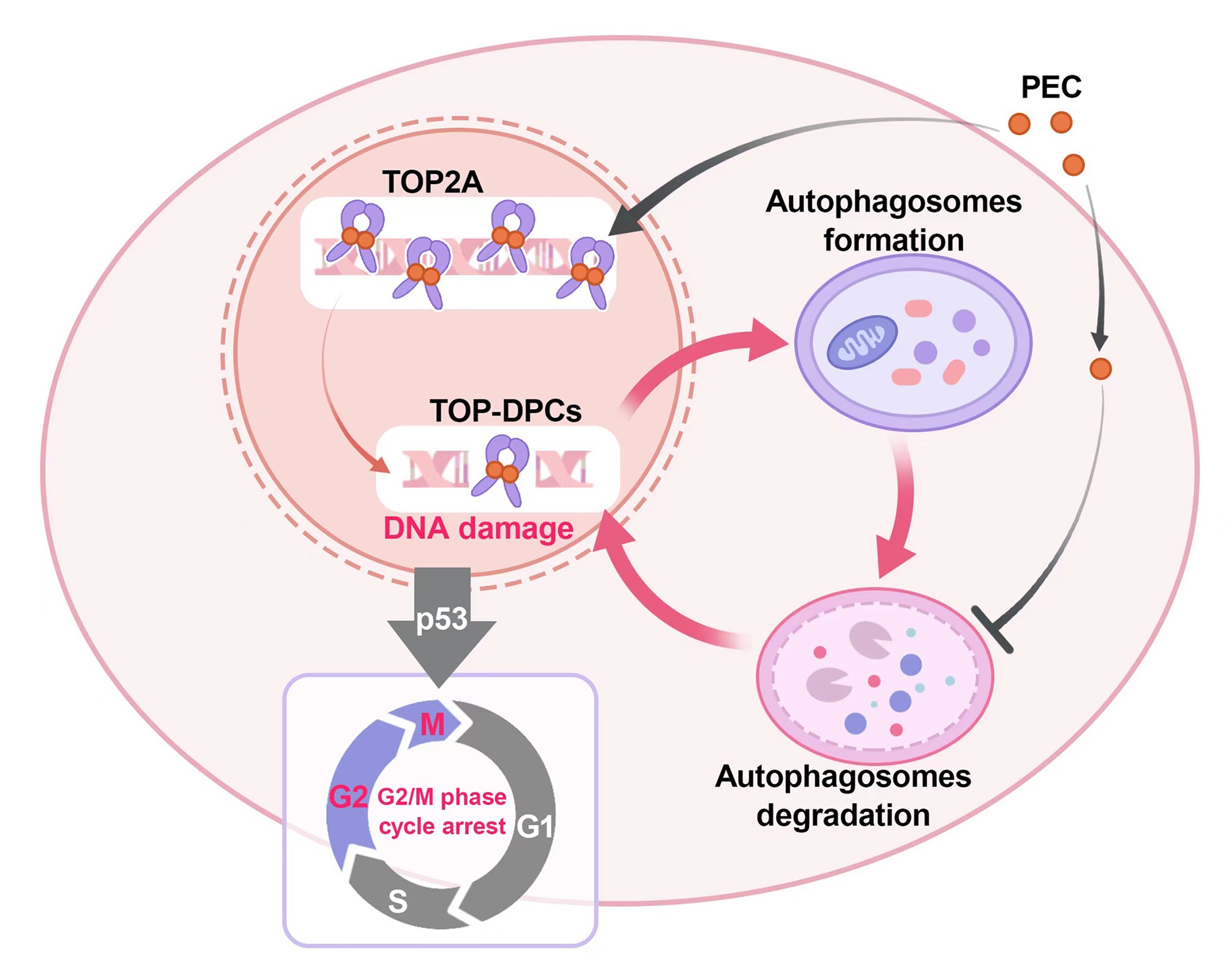 PEC influences both the DNA repair systems and autophagy, making it a promising candidate for BLCA treatment. Our studies show that PEC, especially when used with the chemotherapy drug gemcitabine (GEM), can effectively slow down BLCA progression both in lab and animal studies.